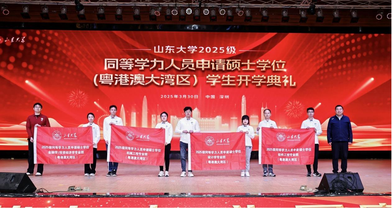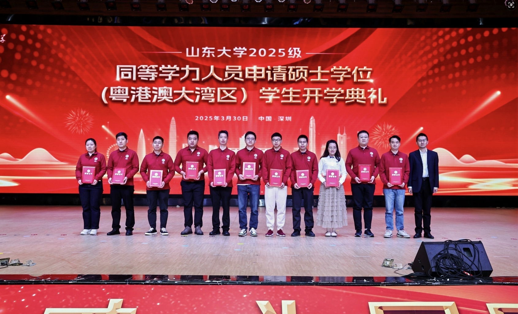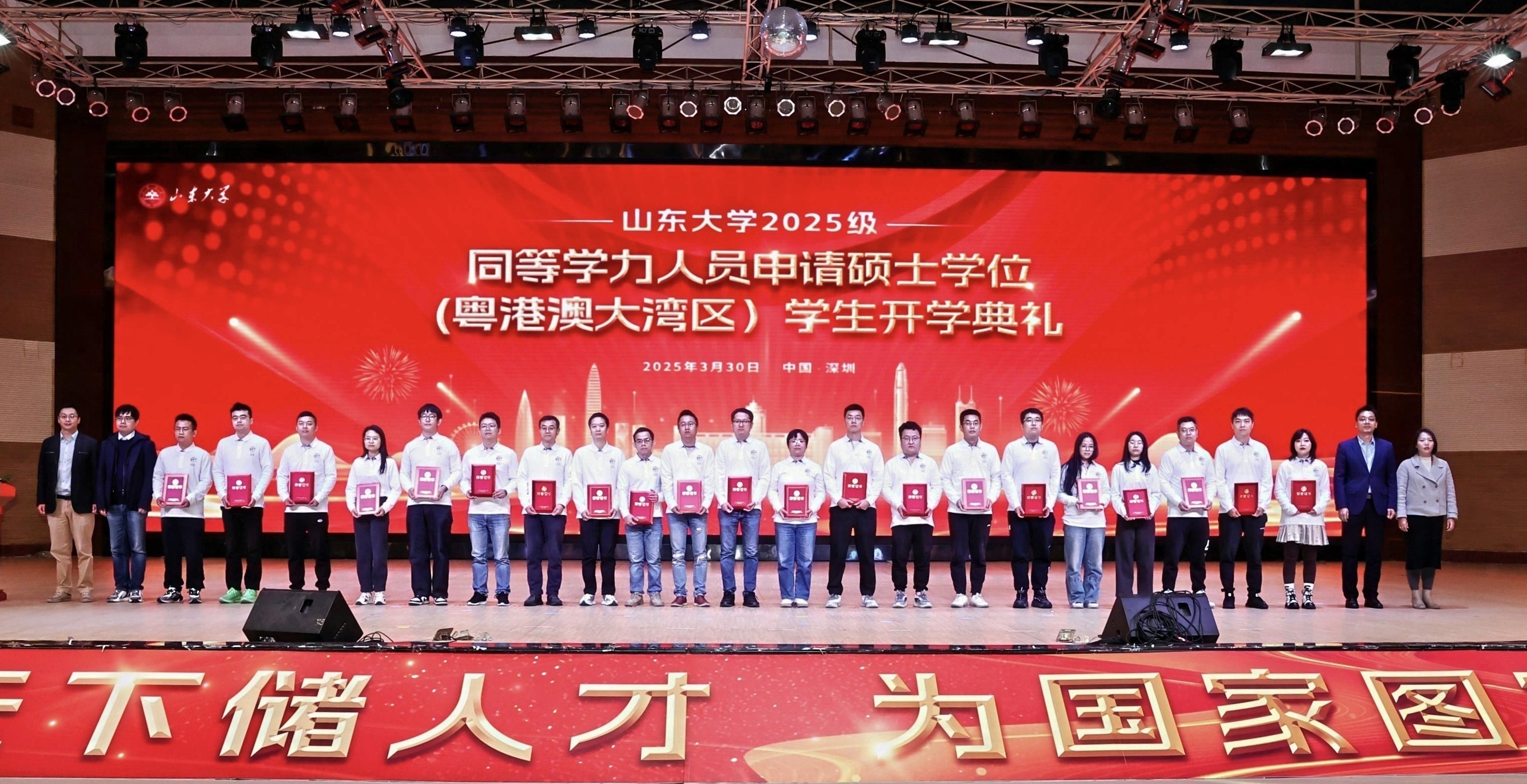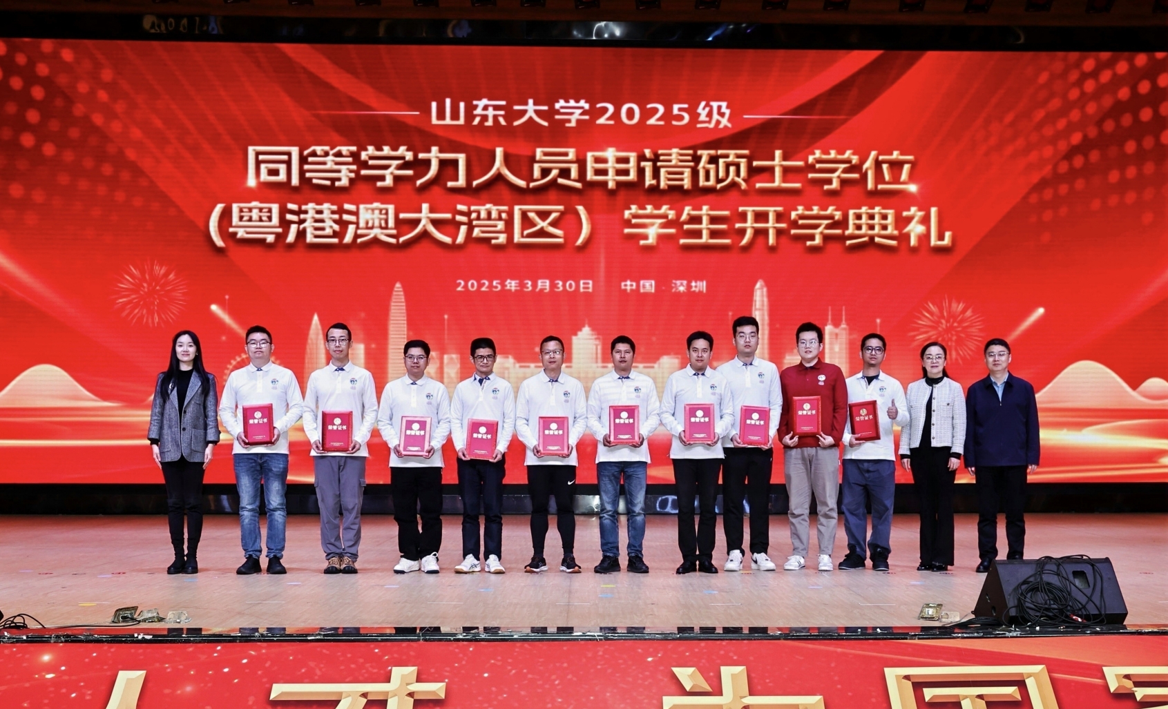 山东大学机械工程学院张纪群副教授、刘文平副教授、软件学院罗昕副教授、深圳研究院副院长王飞虎、财务总监耿晓霞等出席典礼,2025级同等学力人员申请硕士学位(粤港澳大湾区)全体学生参加典礼。