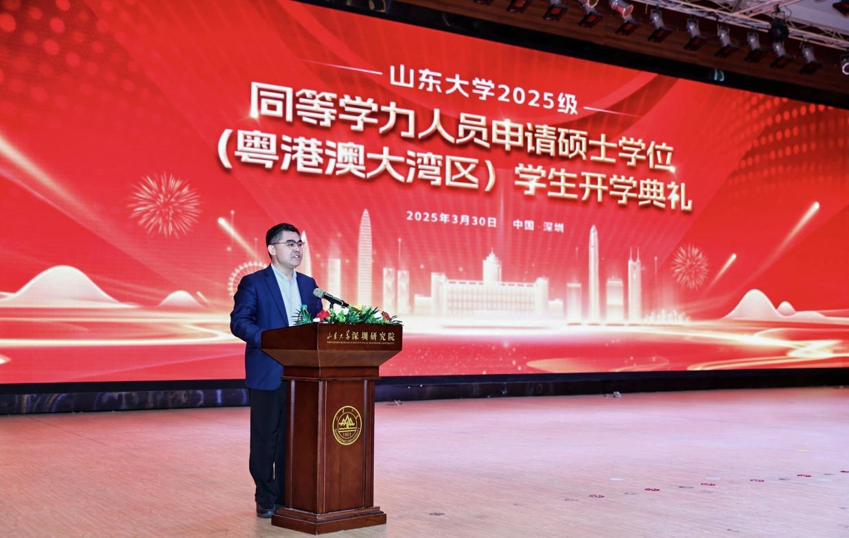 3月30日,山东大学2025级同等学力人员申请硕士学位(粤港澳大湾区)学生开学典礼在深圳坪山比亚迪集团总部举行。山东大学党委副书记陈宏伟、比亚迪集团人力资源处副总经理叶子、深圳区域总监强雁蕾、华润集团啤酒技术研究院副院长吕腾飞、山东大学校友工作办公室主任、校友会秘书长王震,校友会理事、深圳校友会副会长傅杰,机械工程学院党委书记刘杰、经济学院党委书记董春杰、研究生院专业学位教育办公室(在职教育中心)主任、国家卓越工程师学院副院长郑彬等领导嘉宾出席典礼。山东大学深圳研究院长周庆华主持典礼。