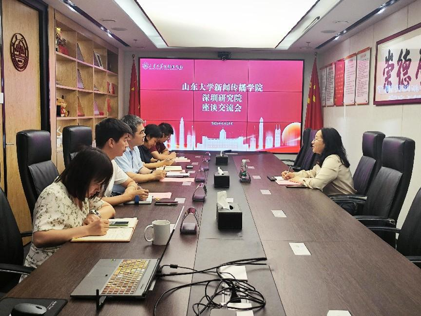 5月29日,山东大学新闻传播学院院长助理孙晓翠到深圳研究院交流座谈,深圳研究院院长周庆华参加会议。