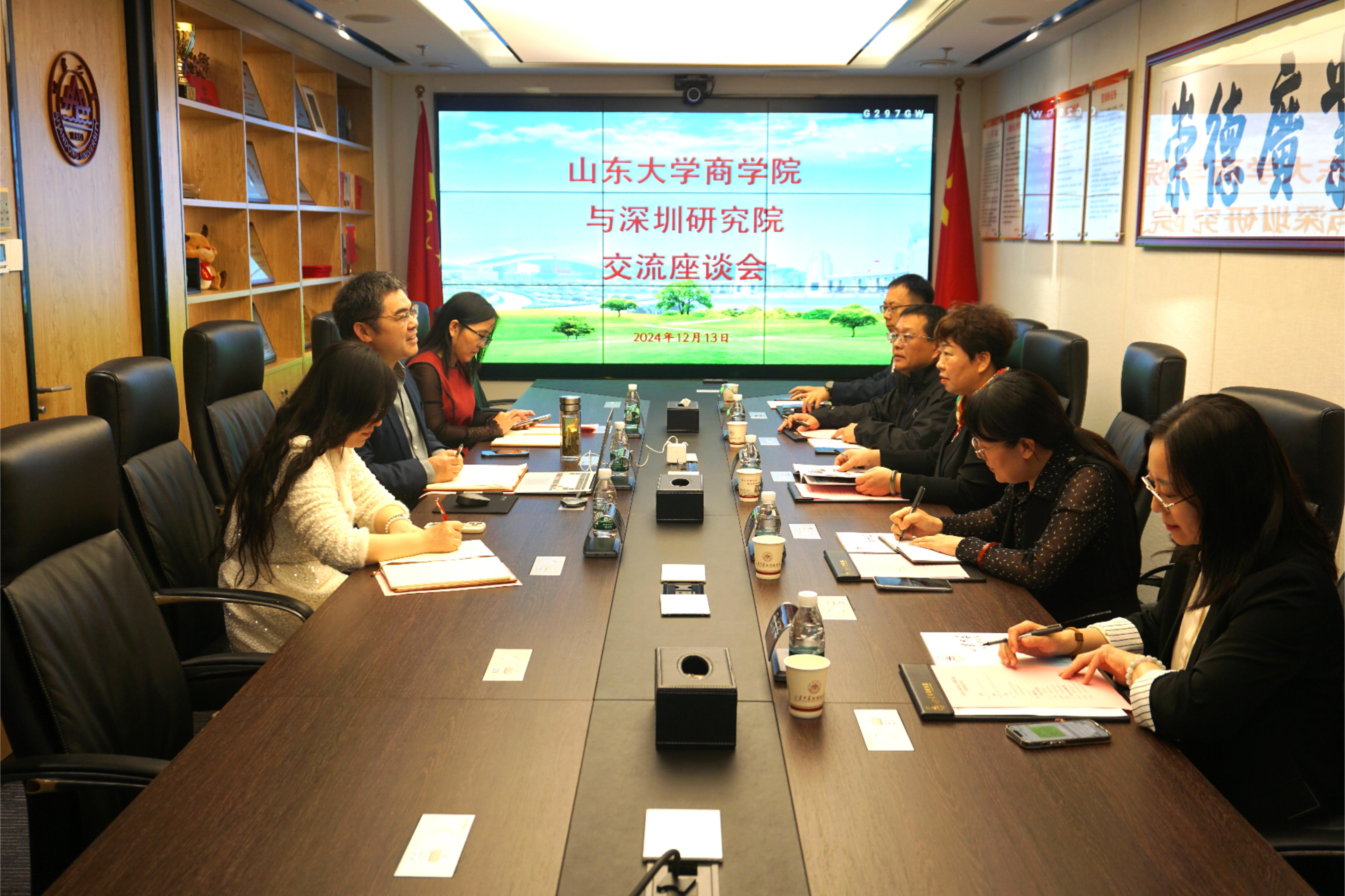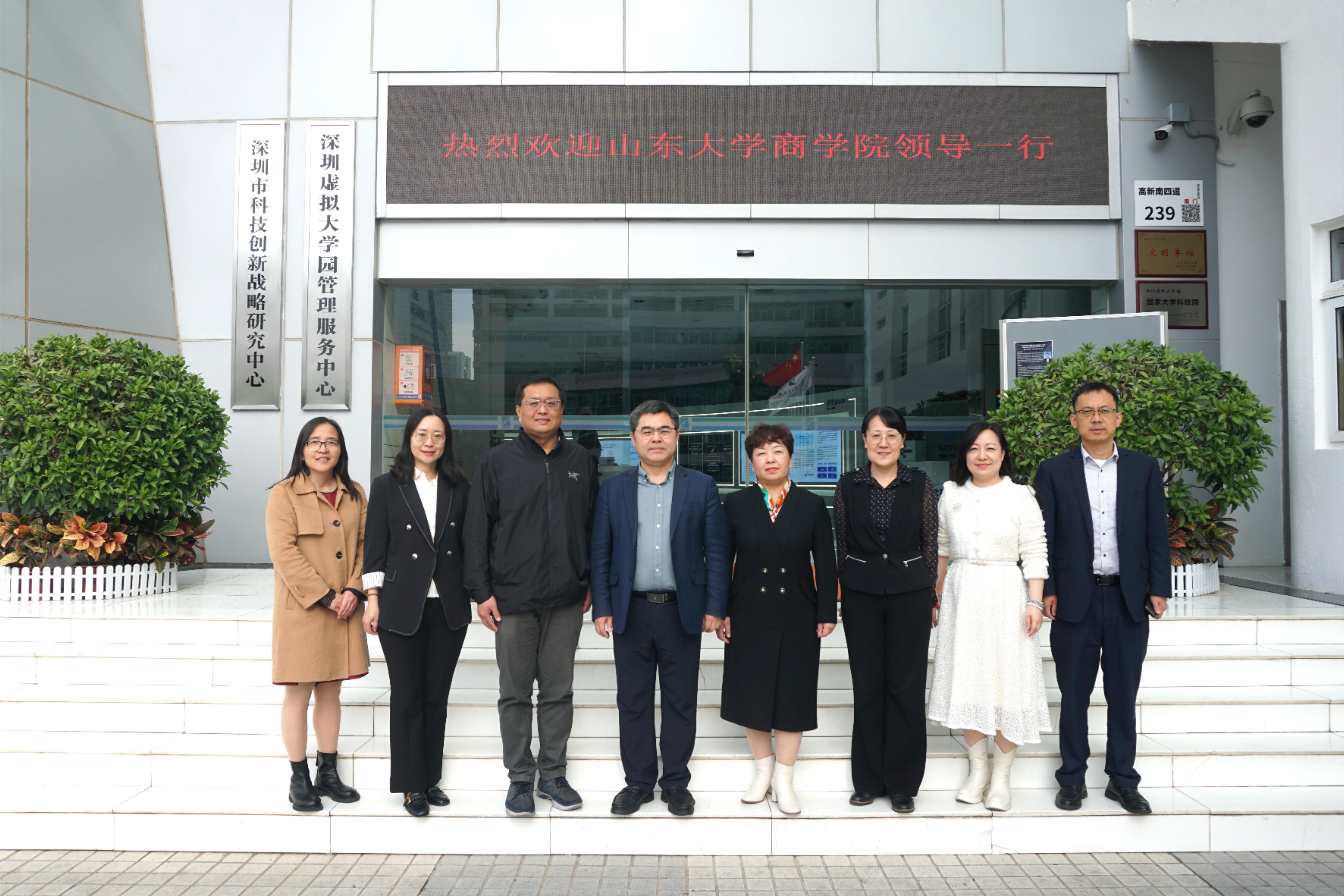 12月13日,商学院党委书记于培丽、院长杨林一行到山东大学深圳研究院调研,深圳研究院院长周庆华主持座谈会并陪同调研。