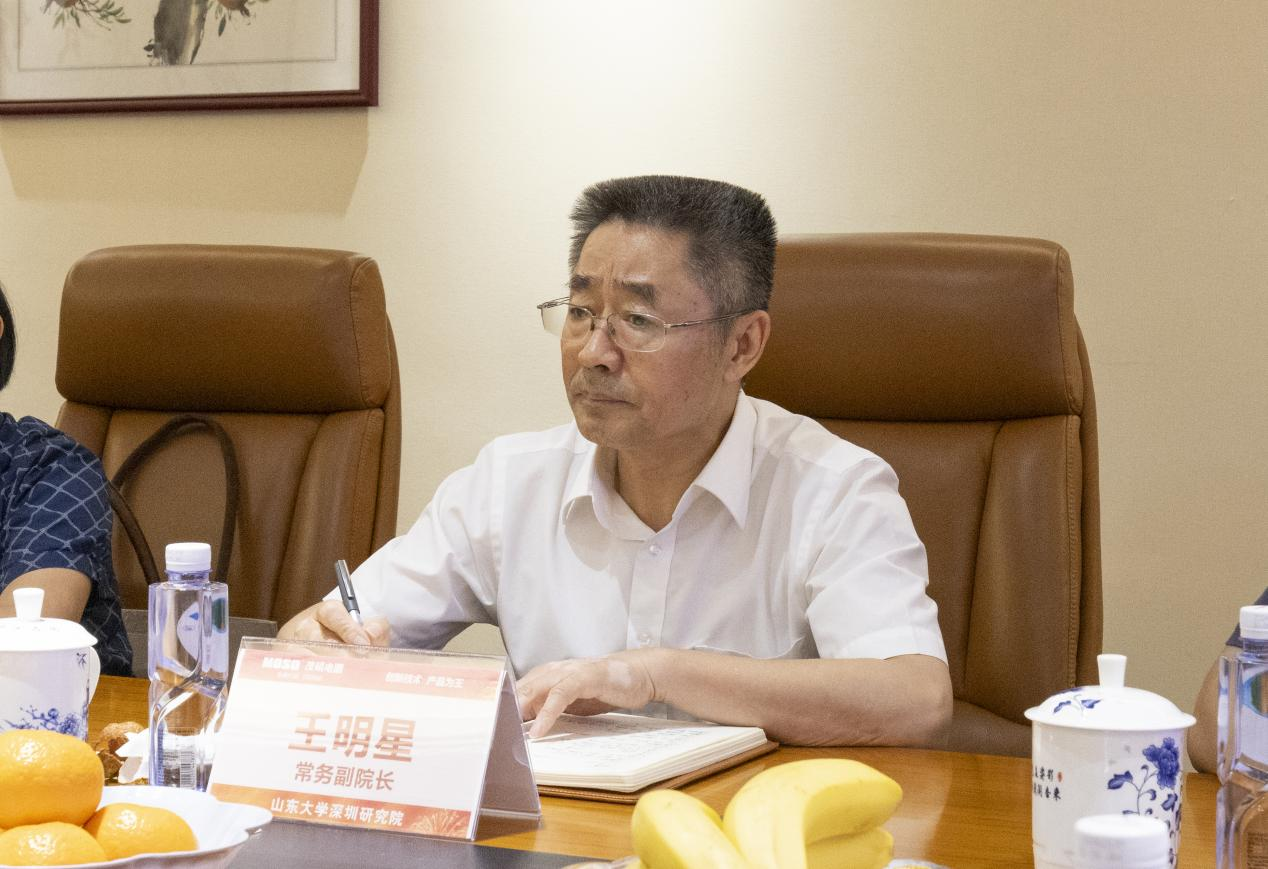 傅亮对王明星一行的到来表示热烈欢迎,对研究院成立多年来在人才培养、科学研究、文化传承与创新和社会服务等方面所取得的耀眼成绩表示充分肯定。他表示,深圳研究院作为山东大学在大湾区的重要平台和窗口,充分发挥桥梁纽带作用,广泛开展校企合作、校地合作,取得了良好的成效。下一步,双方将在国家“双碳”背景下的“一带一路、双循环、湾区+”等发展机遇面前,以国内产经政策为引导,充分发挥各自优势,在科研合作、成果转化、人才引育、文化传承与创新等方面进行深度合作,力求将企业的市场资源优势和高校的人才学术优势进行充分地融合,结出更多硕果,共同创造更高的社会价值。