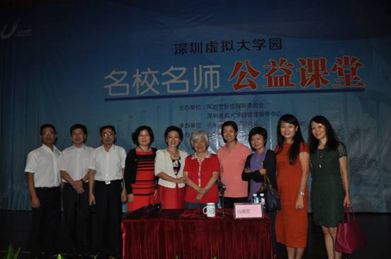 2014年10月18日上午,央视百家讲坛主讲人、山东大学教授马瑞芳受邀做客深圳,主讲的《从金瓶梅到红楼梦》名校名师公益课堂在深圳图书馆隆重举行,吸引了市机关、事业单位、市民等社会各界人士300余人前往倾听,为深圳市民带来了一场丰富的红学文化盛宴。深圳虚拟大学园管理服务中心主任王宁、副主任戎雪亚,深圳市科技创新委员会创新支撑处副处长文莉,深圳东华集团副总经理、山东大学深圳校友会常务副会长王立新,山东大学深圳研究院副院长傅杰及部分员工出席活动。讲座由王明星主持。