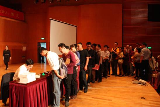 (陈炎副校长给现场听众签名赠书)