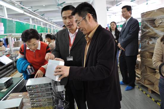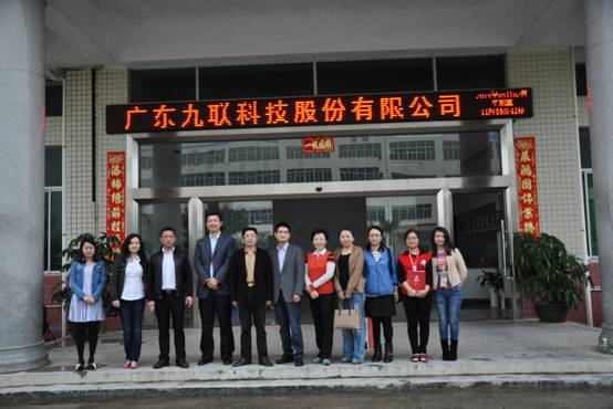 随后,王明星一行来到广东九联科技股份有限公司。制造中心副总经理胡治国、人事主管欧佳等人接了王明星一行,并带领王明星一行参观了生产车间。王明星仔细询问了该公司的生产、研发、人员数量、培训要求、学历结构等情况,双方就员工培养、学历素质提升及科技研发应用等进行了交流。王明星表示,员工学历素质提升及科技合作可以缓冲或解决企业目前面临的留人难和成本高两大难题,胡治国副总对此看法表示高度赞同,双方就教育培训与科技研发合作达成一定共识,共同表示要加强沟通,努力促成合作。