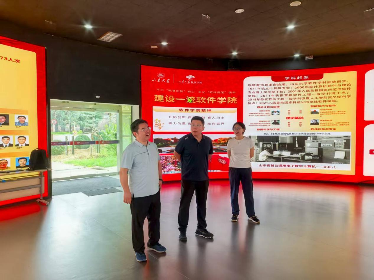 近期,山东大学深圳研究院院长周庆华到软件学院调研交流,软件学院党委书记姜炳刚、副院长刘士军、党委副书记周广鹏参加活动。