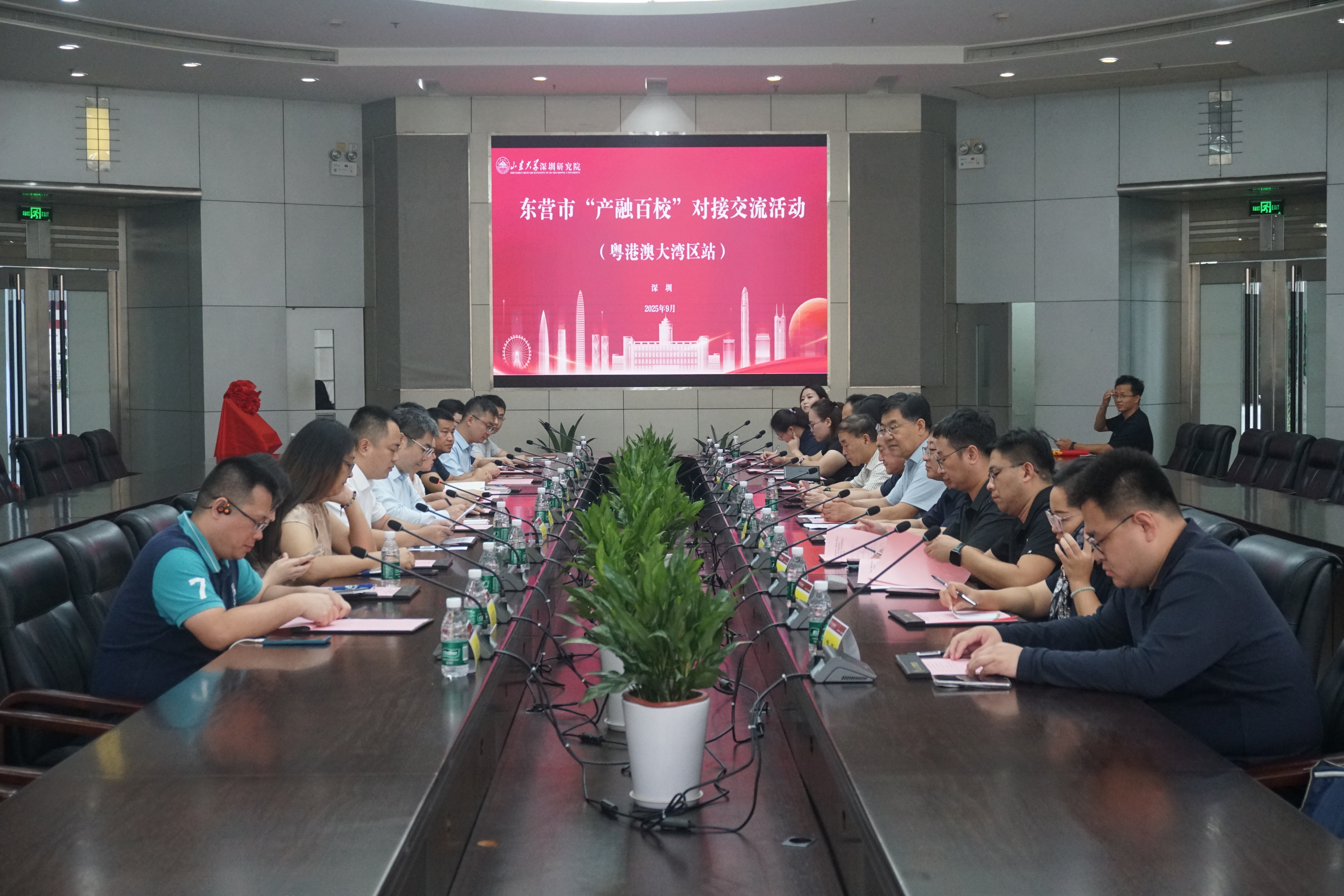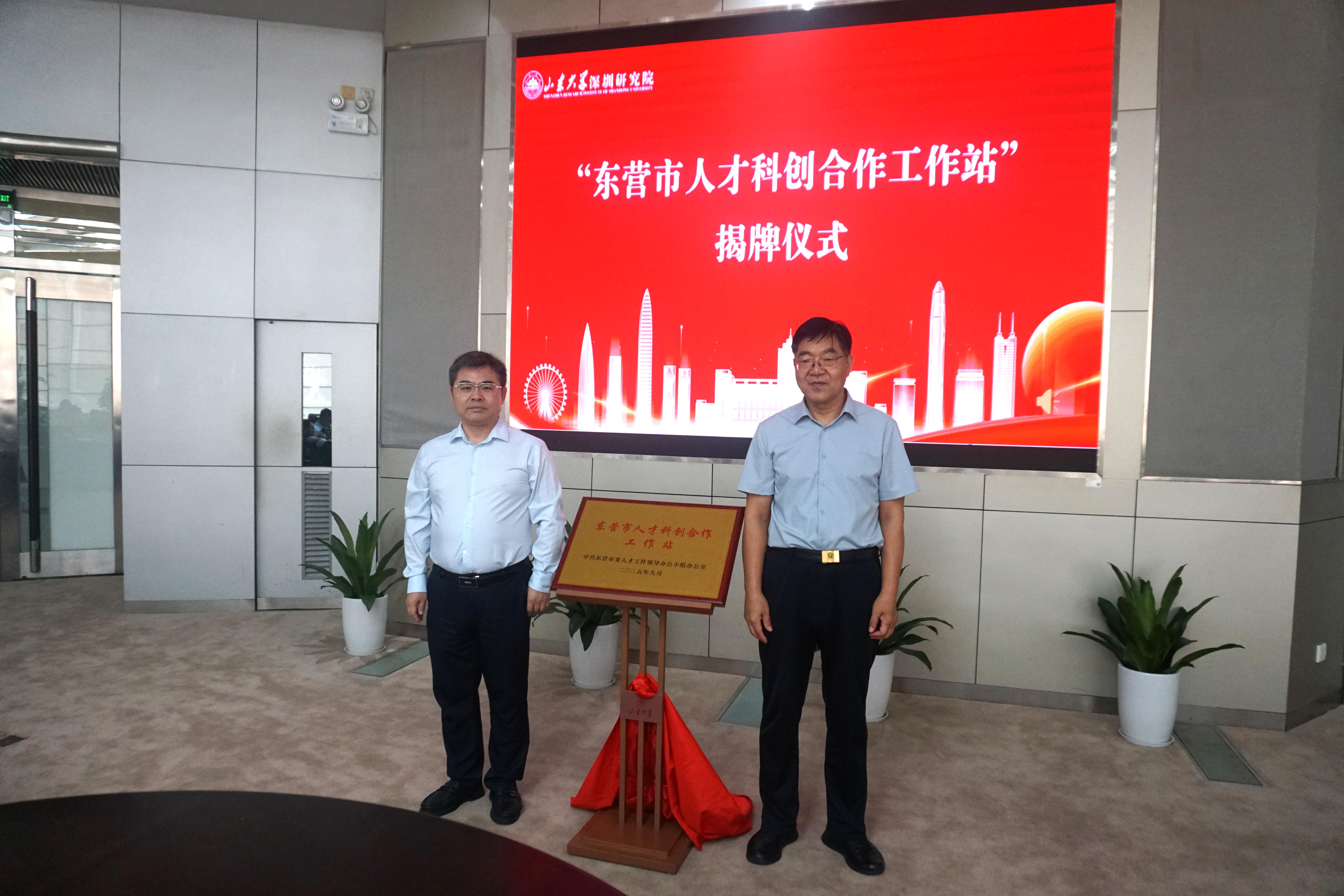 周庆华在致辞中介绍了山东大学和深圳研究院的建设发展情况及学校与东营市的渊源和已有合作,希望以研究院为依托、以工作站为载体,积极推进鲁粤港澳重点行业产业资源对接,着力推动东营市及其重点行业、主导产业、优势企业与湾区重点行业、主导产业的资源对接,助力东营市重点企业在大湾区建设研发飞地和工程化基地、助力湾区重点企业在东营市建立区域中心和生产性基地,使研究院成为链接山东大学、山东省和粤港澳大湾区的桥梁纽带。万有慧介绍了东营市经济社会发展情况和产学研合作需求,赵常兵推介了东营市重点产业和投资环境,周庆华与万有慧为“东营市人才科创合作工作站”揭牌,北京大学、中南大学、武汉理工大学、燕山大学等驻深研究院与东营市政府、院校和企业进行了深入对接交流,会前代表团参观了深圳虚拟大学园25周年展。