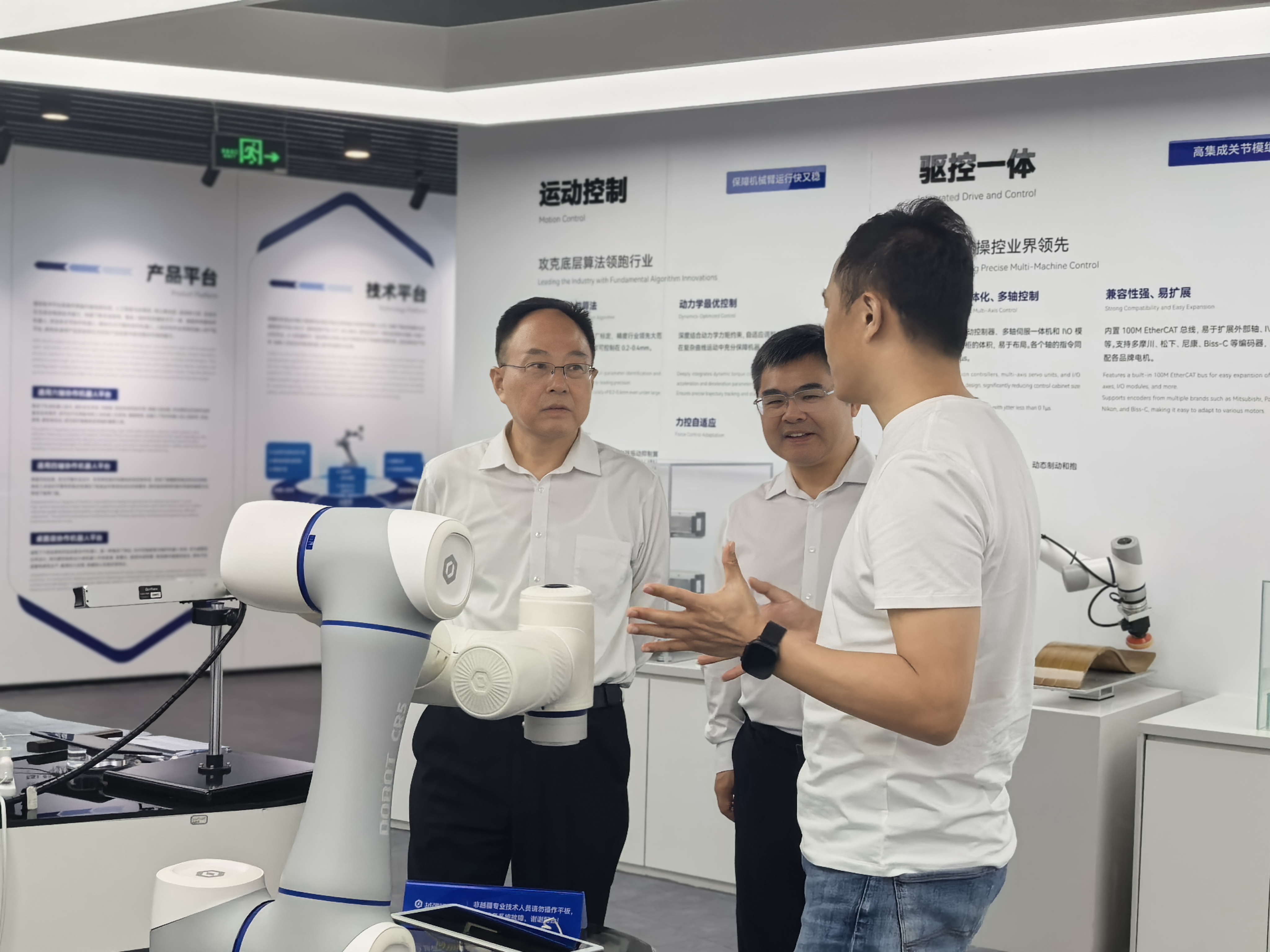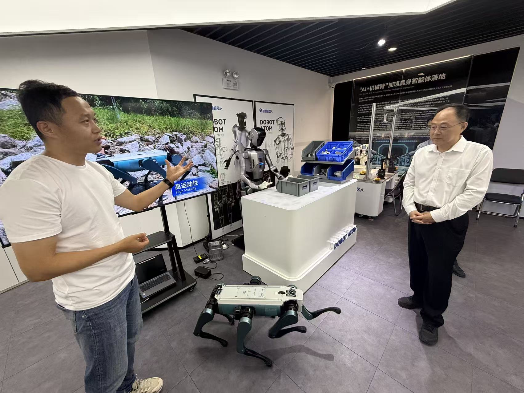 陈向阳一行参观了深圳虚拟大学园25周年展,详细了解大学园的建设发展历程,以及推动科技创新战略实施和整合全球高教资源的实践探索和成效成果。陈向阳一行还专程到校友企业、深圳市越疆科技股份有限公司参访调研,了解越疆科技在具身智能、机器人和机械臂产学研领域的实践、探索和最新进展。
