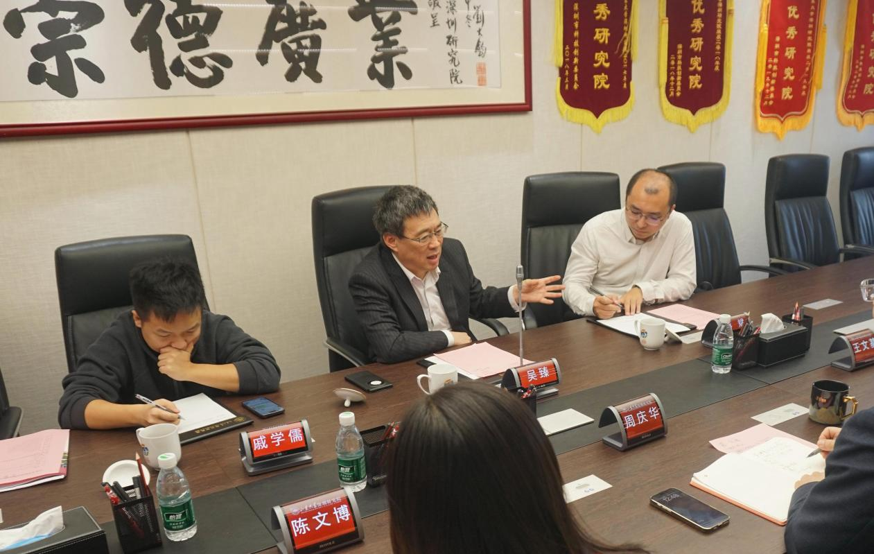 蒋斌介绍了深圳市科技创新战略研究中心(深圳虚拟大学园管理服务中心)在大湾区创新生态构建中的职能定位,以及“科技智库”“概念验证”“跨境合作”等研究院未来建设发展的三个重点方向,表示将一如既往的大力支持山东大学深圳研究院的建设发展,为山东大学深圳研究院的创新发展、转型发展和内涵发展提供政策支撑与平台保障。周庆华作了研究院工作汇报。