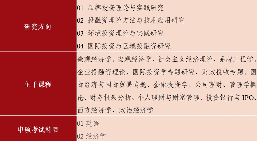 旨在培养具有经济学的基础知识和扎实的专业知识,能广泛应用现有经济学、会计学、金融学理论知识和数学、统计方法,解决投资实践中遇到的各类问题的专业人才,为投资者选择最优决策提供定量定性依据。