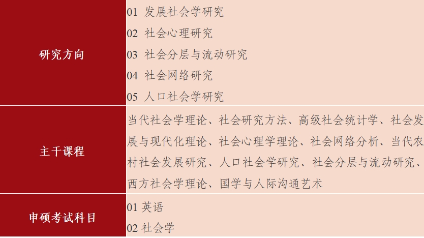 旨在培养能够运用社会学的理论方法去分析解释社会发展过程中的相关问题的专业人才,要求学生具有社会调查研究的实际操作能力和较高的分析社会问题的理论水平。