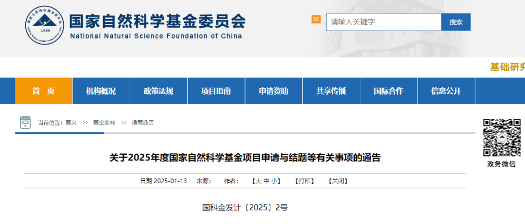 (四)《指南》拟于2025年1月中旬在自然科学基金委网站公布。
