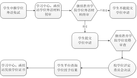 学生平台提交学位外语免试证明材料并向学习中心、函授站提交相关材料的原件进行查验,申请材料须真实有效,对于弄虚作假者,一经查实,取消学位申请资格。