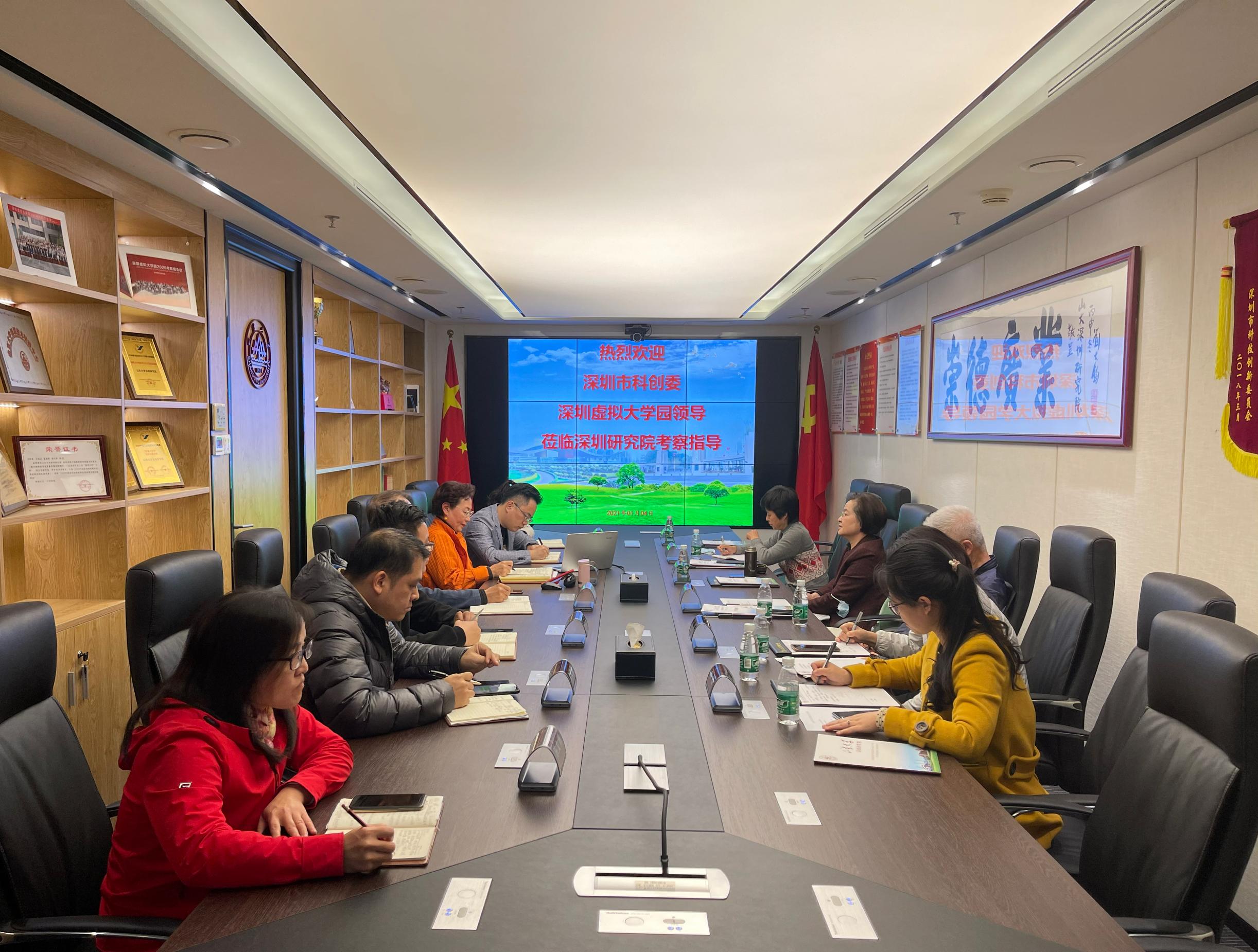 深圳市科技创新战略研究中心副主任陈蓉、钟赟,综合服务部副部长申杨,山东大学深圳研究院办公室主任王飞虎、网络教育部部长余天豪、教育培训部部长刘中华、副部长董玲琳、科技合作部部长苗东凯、副部长陈文博参加了座谈会。