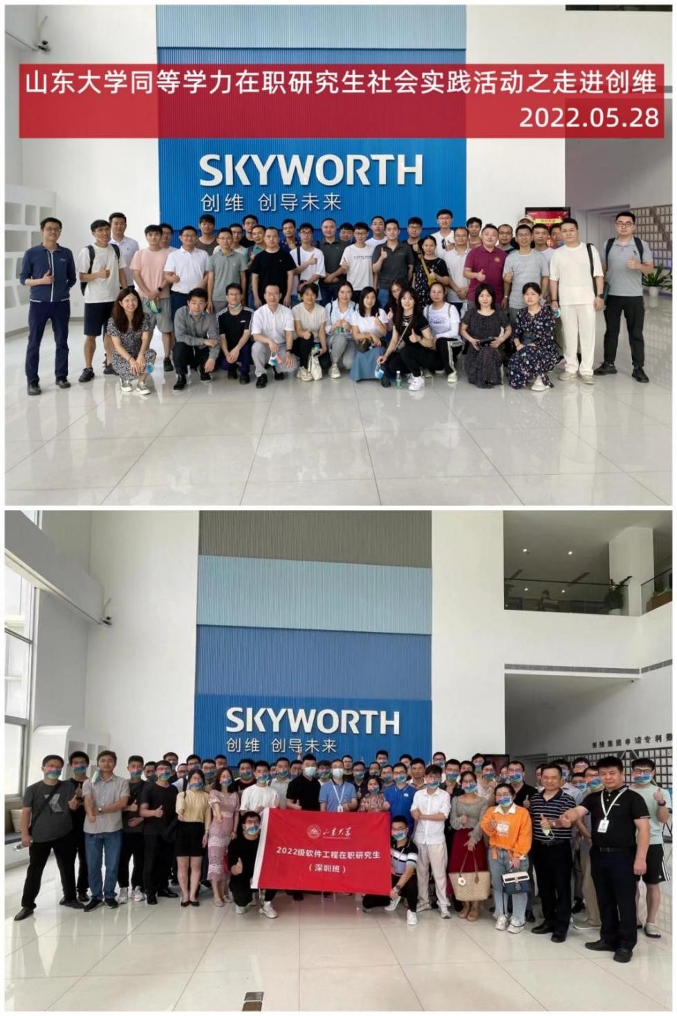 5月28日,山东大学在职研究生社会实践之创维名企行活动圆满结束。本次活动由班主任陈湘艳、饶婕带队,软件工程专业同学走进创维集团参观学习,创维集团主任工程师徐遥令和副主任工程师张广谱等热情接待了参访学生一行并进行交流座谈。