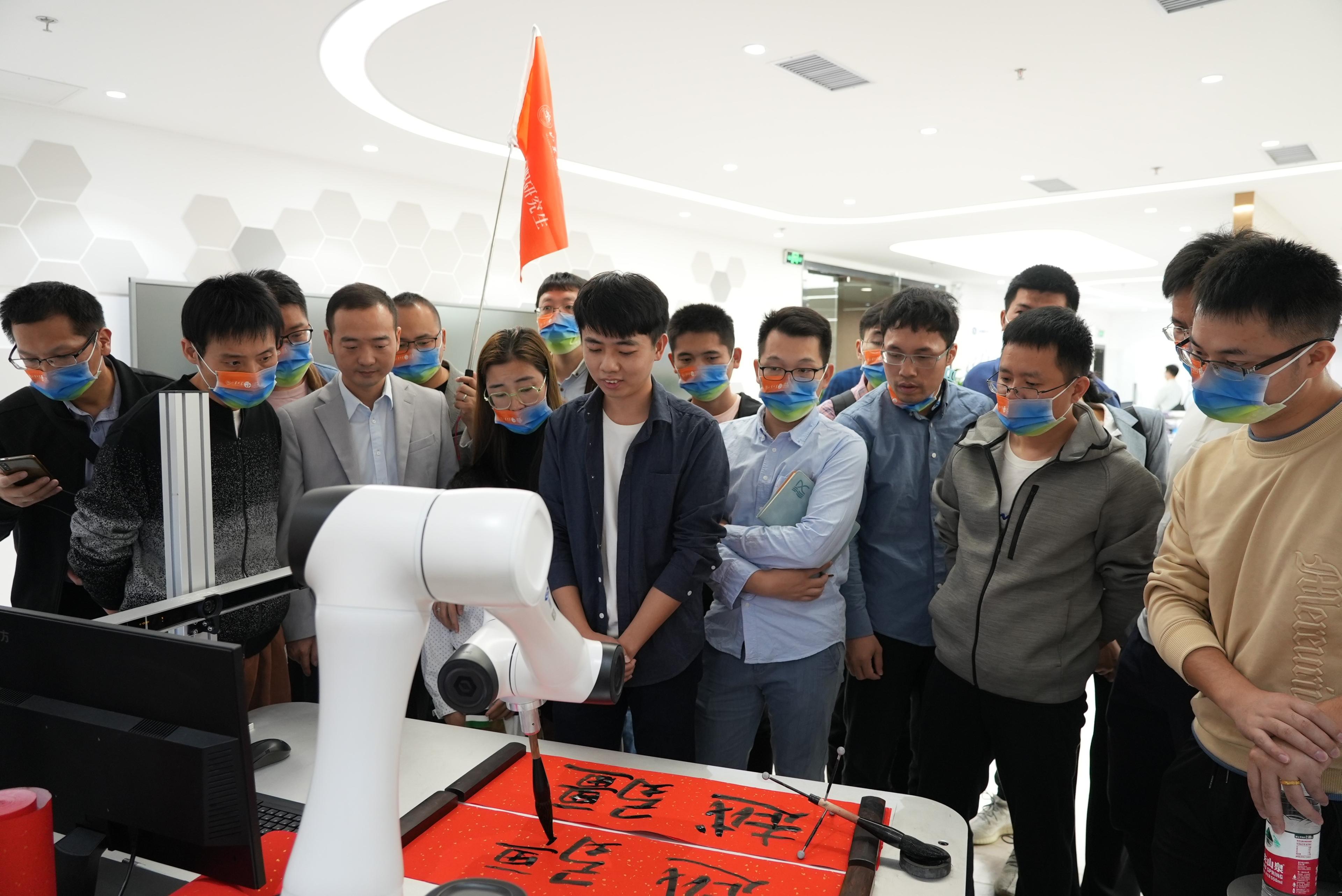 当天活动精彩纷呈,同学们第一站参观了科技展厅,工程师详细讲解了各种产品的性能及应用场景,并进行了现场演示。同学们也现场体验了3D打印、激光雕刻、写字画画、五子棋对弈等机械臂最前沿的玩法,直观地了解了越疆科技在智能机械臂领域的实践和探索,并纷纷为越疆科技的产品点赞。