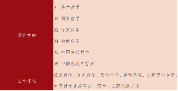 旨在培养具有中国哲学专业知识和思维方式,能够从事中国哲学、中国宗教和中国文化研究和教学的高层次人才,以及宣传、管理、新闻、出版、统战、对外文化交流等部门高素质的实际工作者。