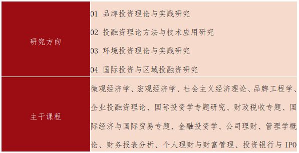 旨在培养具有经济学的基础知识和扎实的专业知识,能广泛应用现有经济学、会计学、金融学理论知识和数学、统计方法,解决投资实践中遇到的各类问题,为投资者选择最优决策提供定量定性依据。