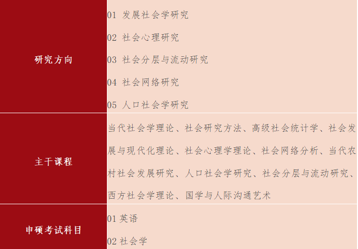 旨在培养能够运用社会学的理论方法去分析解释社会发展过程中的相关问题,要求学生具有社会调查研究的实际操作能力和较高的分析社会问题的理论水平。