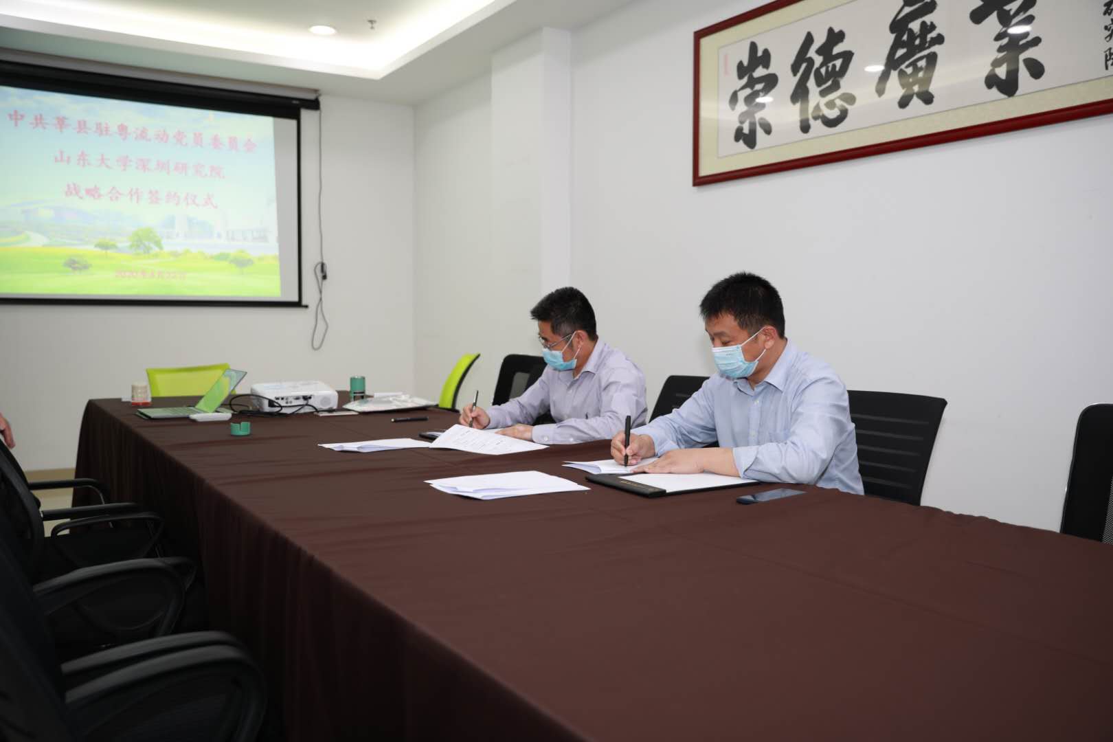 深圳研究院坚持山东大学“服务山东战略就是服务国家战略,服务山东发展就是服务国家发展”的指导思想,认真贯彻落实山东大学党的第十四次代表大会报告指出的“提升驻外研究院的工作能力和水平,‘引进来’,‘走出去’,实施驻外研究院服务山东计划”会议精神,与中共莘县驻粤流动党员委员会积极对接,深入探讨充分了解莘县有关党建品牌提升、培养优秀高端人才和产学研融合发展的迫切需求,经过友好协商,双方就结成长期、全面的战略伙伴关系达成合作协议。