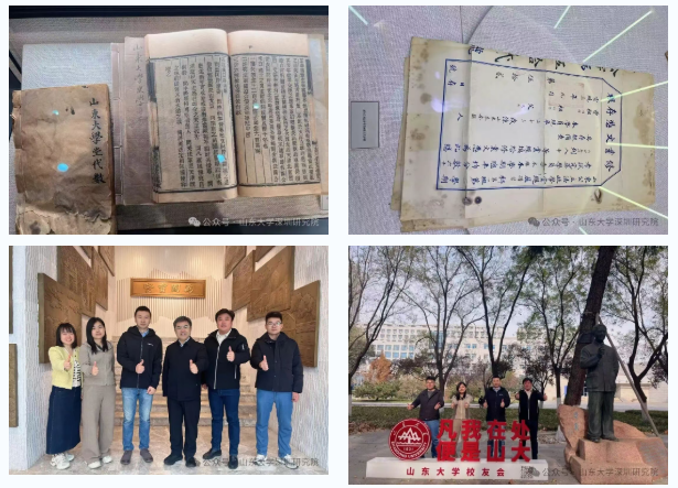 答辩结束后,深圳研究院院长周庆华带领同学们参观了校史馆并作详细讲解。同学们在校史馆中完成了一次穿越百年的对话,那些泛黄的史料、斑驳的报刊和鲜活的历史场景,共同勾勒出百廿学府沧桑而辉煌的历程。走出馆舍,同学们开启了一场校园巡礼——从巍峨的南大门启程,行经开阔的大成广场,再到清幽的小树林悠然漫步。沿途,稷下广场的开放精神、“八马同槽”的学术盛景、闻一多与臧克家的师生情结,以及华岗、成仿吾老校长的先贤风范,无不令人驻足深思,追寻先贤足迹,感受人文底蕴,感悟精神传承。同学们表示,将秉承母校“为天下储人才,为国家图富强”的办学宗旨,践行“学无止境,气有浩然”的校训精神,在未来人生道路上续写自己的精彩篇章,为中华民族伟大复兴贡献自己的智慧和力量。