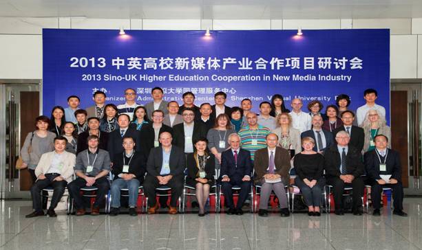 2013/12/1-2日,常务副院长王明星作为应邀嘉宾,参加了深圳虚拟大学组织召开的“中英高等教育创新媒体产业合作项研讨会”。王明星参与了中英高校新媒体教育论坛及中英校企合作洽谈会,重点介绍了山东大学的优势学科及研究院概况,并围绕新媒体条件下的高等教育机遇和挑战、新媒体研究热点、课程设置与学生就业、人才联合培养、师资培训与交流等问题展开研讨。英国的诺西汉特伦特大学等8家高等院校就研究生培养和短期交流培训项目希望与山东大学深圳研究院合作;研究院与天华世纪传媒有限公司等就研究生实习基地设立及学生实习达成了良好的合作意向。