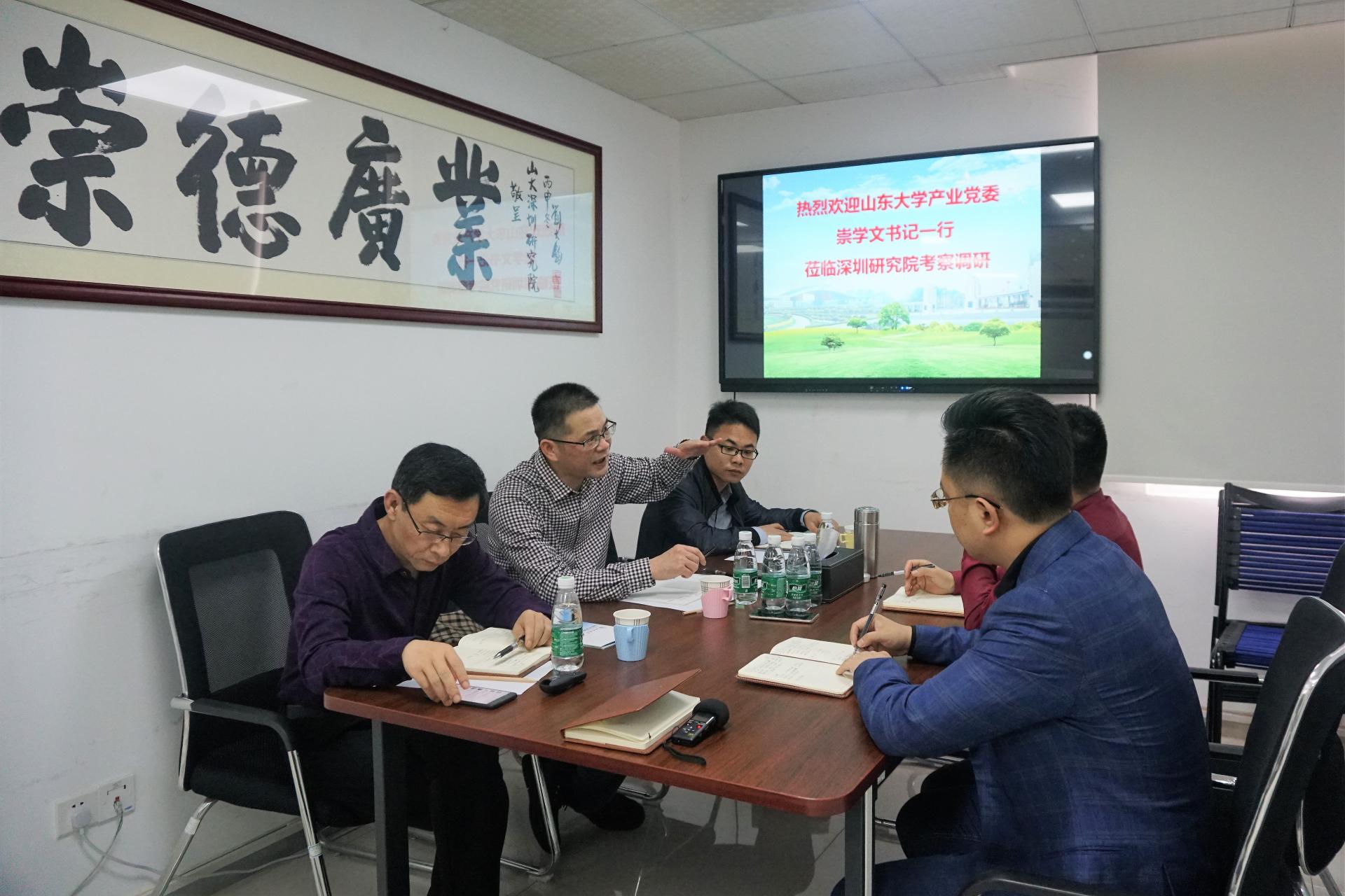 4月16日,山东大学产业集团党委书记崇学文一行莅临深圳研究院调研座谈。山东大学深圳研究院常委副院长兼合作发展部副部长王明星参加活动。