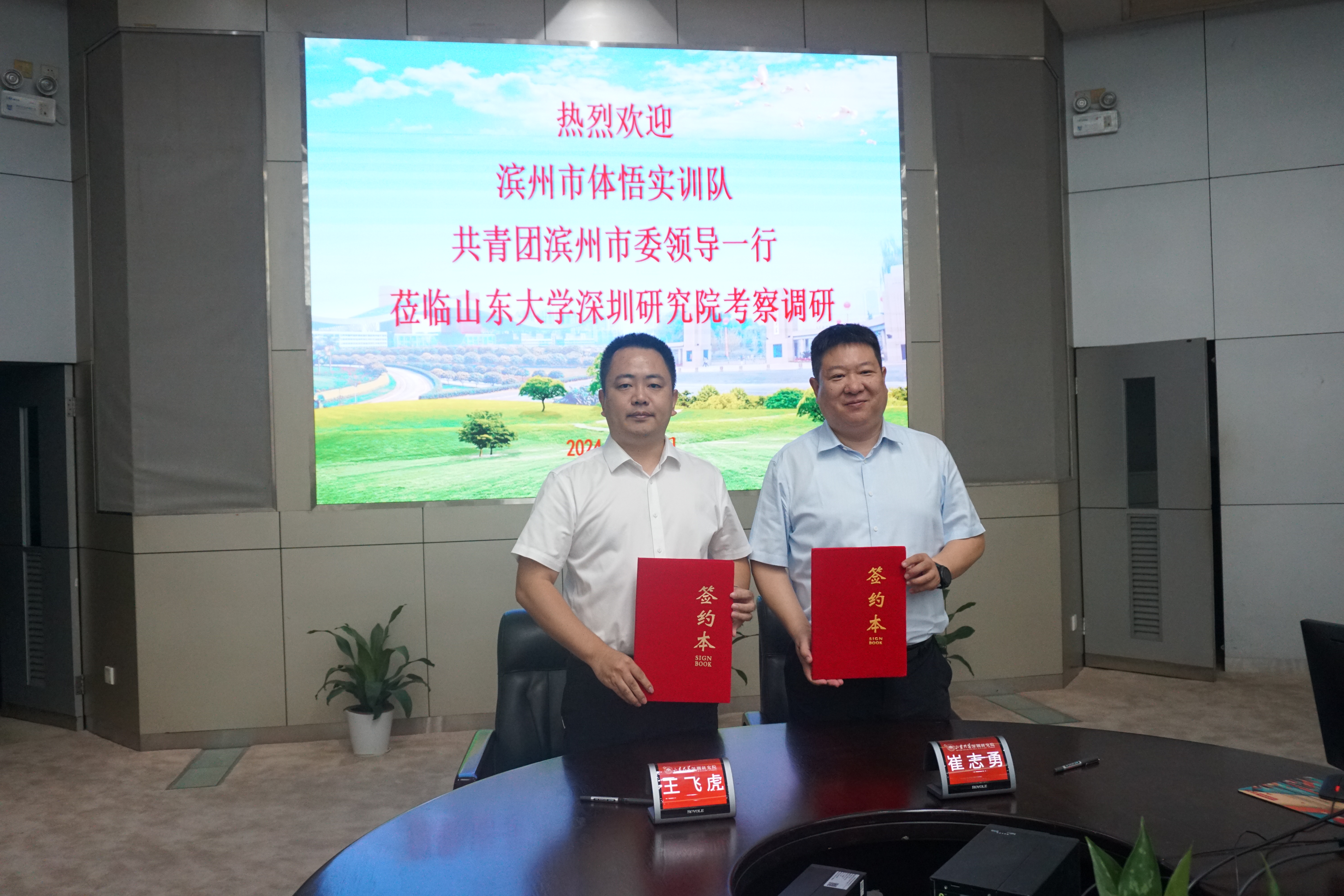 11月1日,共青团滨州市委与山东大学深圳研究院校地合作交流会暨签约揭牌仪式在深圳虚拟大学园举行。滨州市社科联党组书记、主席、滨州市赴深圳“体悟实训”队领队崔洪凤,共青团滨州市委书记崔志勇、滨州市海洋发展研究院党支部副书记王锋,山东大学深圳研究院院长周庆华出席活动,山东大学深圳研究院副院长、综合办公室主任王飞虎主持活动。