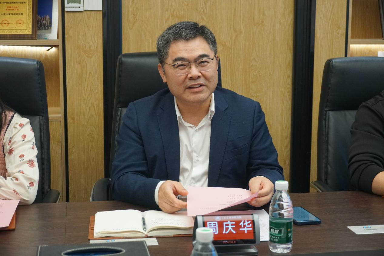 11月28日,山东大学哲学与社会发展学院党委书记梅强一行到深圳调研交流,深圳研究院院长周庆华主持交流座谈会并陪同调研。