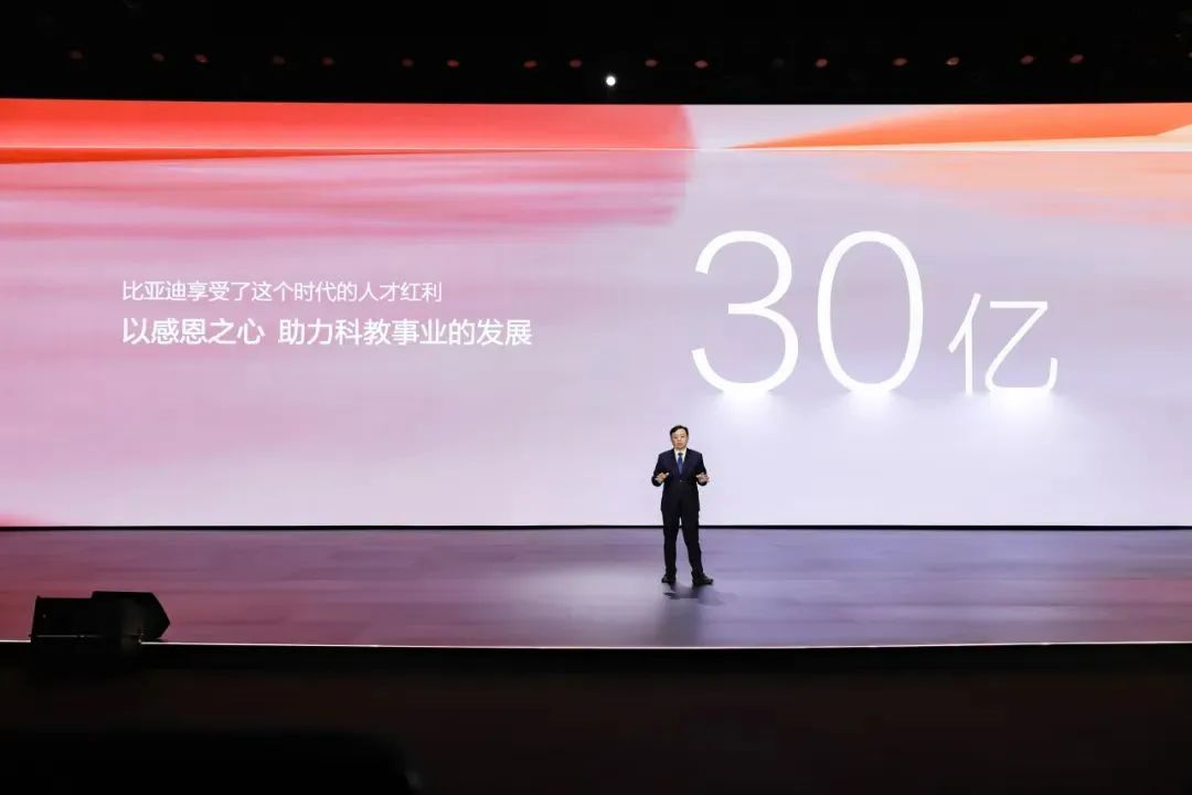 在启动仪式上,王传福强调,科教兴国战略对于比亚迪乃至整个新能源汽车行业的重要性不可估量。正是在这一战略的指引和推动下,比亚迪才有了今日的辉煌成就,中国新能源汽车行业也才得以实现飞速发展。比亚迪始终将人才视为企业发展的核心竞争力和科技创新的底气来源,因此,为了感恩国家的科教兴国战略以及各大高校为社会培养的卓越人才,比亚迪决定捐资 30 亿聚焦教育慈善事业,主要用于高校奖学金及新能源技术科普,旨在通过此举助推中国科教事业蓬勃发展,为国家的科技进步和人才培养贡献力量。