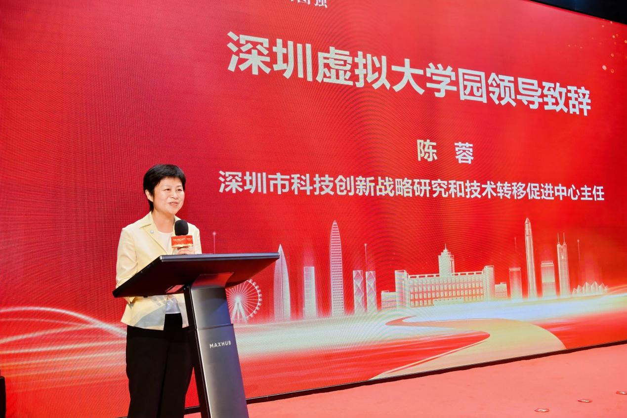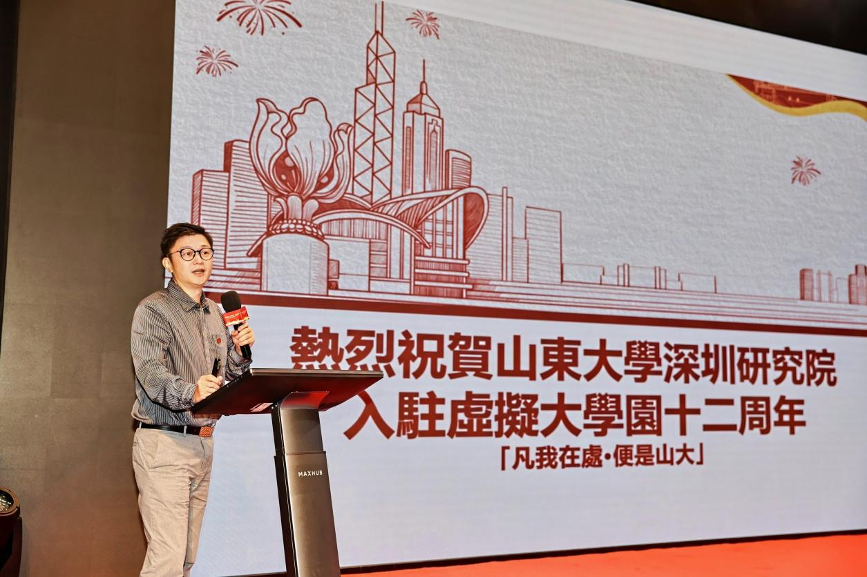 陈蓉代表深圳市科技创新战略研究和技术转移促进中心为大会致辞,她向山东大学一直以来对创新中心的支持表示衷心感谢,对研究院入驻十二周年取得的成绩表示热烈祝贺。她表示,24年来,虚拟大学园在包括山东大学在内的各成员院校的共同努力下,根植于深圳特区,联络港澳、服务周边、辐射全国,不断成长壮大,通过人才培养、科技成果转化和科研机构建设,为深圳构建综合创新生态体系发挥了重要的支撑和引领作用。山东大学是中国近代高等教育的起源性大学和国家“双一流”建设高校,经过120余年的发展,积淀形成“学科齐全、文史见长、人才荟萃、顶天立地”的办学特色。2024年是山大深研院入驻十二周年,研究院锚定学校“全面图强”的奋进坐标,紧抓深圳“20+8”产业集群需求,全面推进转型发展提档升级,打造学校在粤港澳大湾区的人才聚集和引育枢纽基地,先后获得教育部产教融合校企合作典型案例等40余项荣誉奖项,连续多年被评为“优秀研究院”,助力深圳市科技创新发展和大湾区高水平人才高地建设。未来创新中心将继续深化与山东大学的合作,与研究院一起携手共进,支持深圳市基础研究和创新策源,加快发展新质生产力,推进战略性新兴产业集群和未来产业高质量发展,深化校地合作,鼓励校友到深圳市创新创业创造,形成优势互补、资源共享的合作态势,共同实现创新高质量发展。