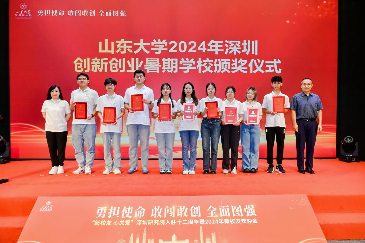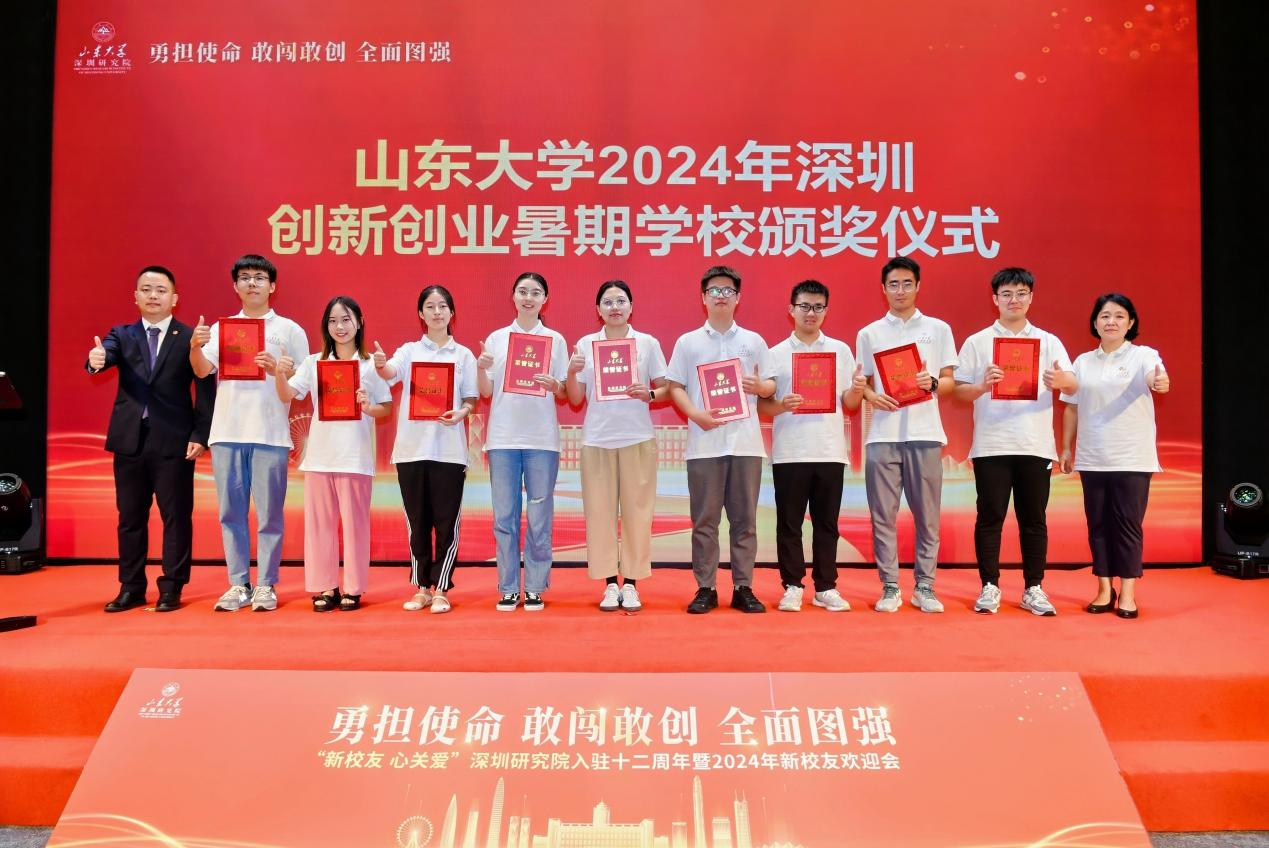 为加快打造培养集聚拔尖创新人才的人才高地,助力学校在“两个先行先试”中做表率,研究院连续九年举办山东大学深圳创新创业暑期学校,选拔一校三地本硕博优秀创新人才到大湾区名企名校研学实训,助力拔尖创新人才培养。活动现场举行了暑期学校颁奖仪式,于德宁、冯守刚、王飞虎、耿晓霞、陈文博、董玲琳分别为暑期学校项目优秀学生及团队颁发荣誉证书。