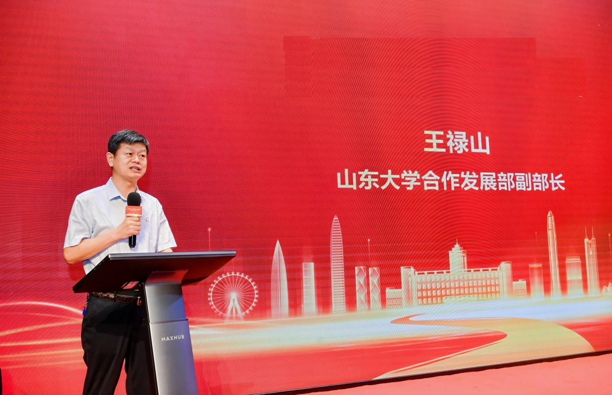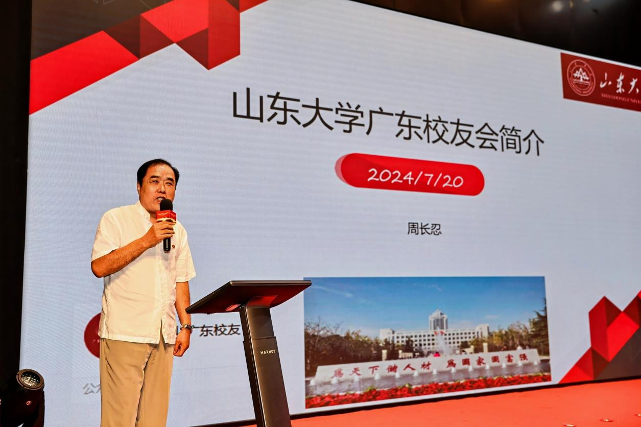 王禄山在大会上致辞,他代表山东大学向长期以来关心支持山东大学、深圳研究院、广深港校友会的各界朋友表示衷心的感谢,向粤港澳大湾区新校友表示热烈的欢迎,向深圳研究院入驻十二年以来敢闯敢创、全面图强所取得的成绩表示热烈的祝贺。他表示,近年来,山东大学坚持以习近平新时代中国特色社会主义思想为指导,全面贯彻党的二十大精神,深入落实习近平总书记给《文史哲》编辑部全体编辑人员的重要回信精神,聚焦“强国建设、山大何为”时代课题,认真落实教育科技人才“三位一体”战略部署,着力彰显“两个先行先试”的使命担当,在全面融入中国式现代化建设中开启了“全面图强”新征程。学校人才培养能力显著提升,队伍建设奋起勃发,学科水平再攀新高,科学研究成果丰硕,社会服务贡献突出,文化引领担当有为,国际交流纵深拓展,综合实力快速增强、办学水平显著提升,开创了中国特色世界一流大学建设新局面。他指出,深圳研究院作为山东大学在粤港澳大湾区的功能延伸,是学校服务国家战略的重要平台。近年来,研究院在学校党委领导下,在学校各单位和深圳市主管部门、广大校友和社会各界朋友的关心支持下,敢闯敢创、敢为人先,为服务学校和粤港澳大湾区高质量发展做了大量卓有成效的工作,在人才培养、科学研究与成果转化、文化传承与创新、社会服务和国际交流等方面都取得了亮眼的成绩,实现经济、社会效益双提升,成为学校驻外研究院建设的标杆旗帜,有力提升了山东大学的竞争力和美誉度,切实推动了学校事业与大湾区经济社会高质量发展同心同向、同频共振。近日二十届三中全会胜利闭幕,对深化教育科技人才体制机制一体改革作出了重要部署,学校第十五次党代会刚刚结束,也对山东大学服务教育强国建设的使命、目标、战略、路径作出新的部署,提出了“一五七九”的发展思路,同时也为深圳研究院转型升级指明了方向。借此机会,他向广大大湾区校友提出三点希望:一是要坚定理想信念,铸就强国之魂;二是要坚持崇实求新,增强强国之智;三是要坚持胸怀天下,勇建强国之功。他衷心祝愿各位校友能够在大湾区实现抱负,成就梦想;祝愿深圳研究院勇攀高峰,蓬勃发展;祝愿大湾区校友会工作精益求精,再创佳绩,共同为建设更有担当、更有底气、更加卓越、更加开放的中国特色世界一流大学,建设担当民族复兴大任的世界一流大学作出新的山大贡献!