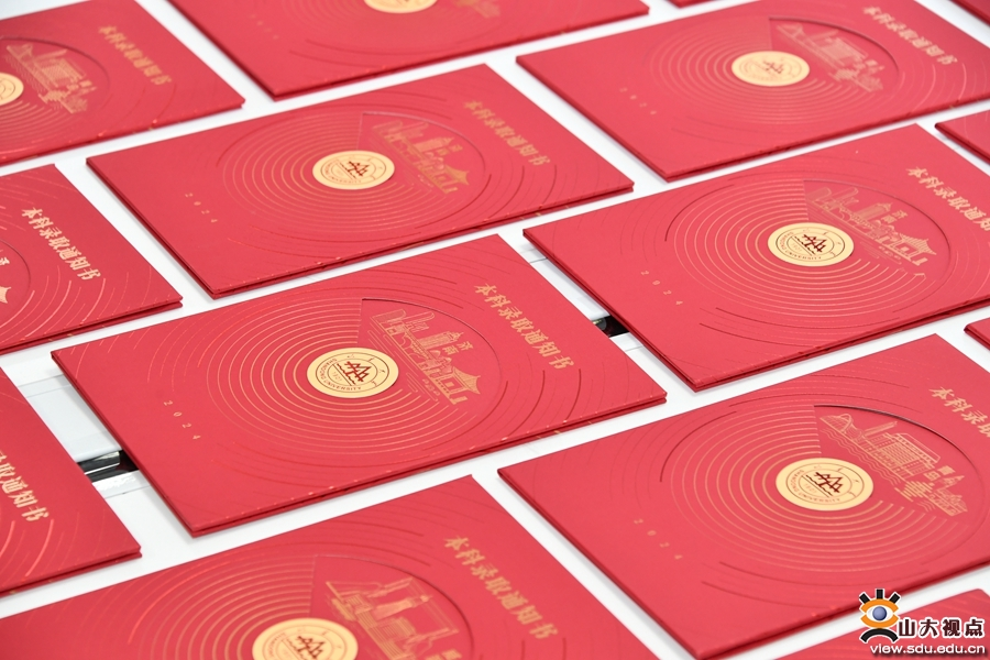 日月其迈,斗转星移。今年,山大录取通知书封面采用转盘形式,转盘外圈巧妙融合耀眼星轨与时间年轮,变幻出一校三地的景致:济南的汩汩泉水、青岛“五月的风”、威海“画中画”,象征着山东大学的百廿历史与璀璨光辉,象征着新山大人在百廿山大的光辉下奔向星光粲然的未来。