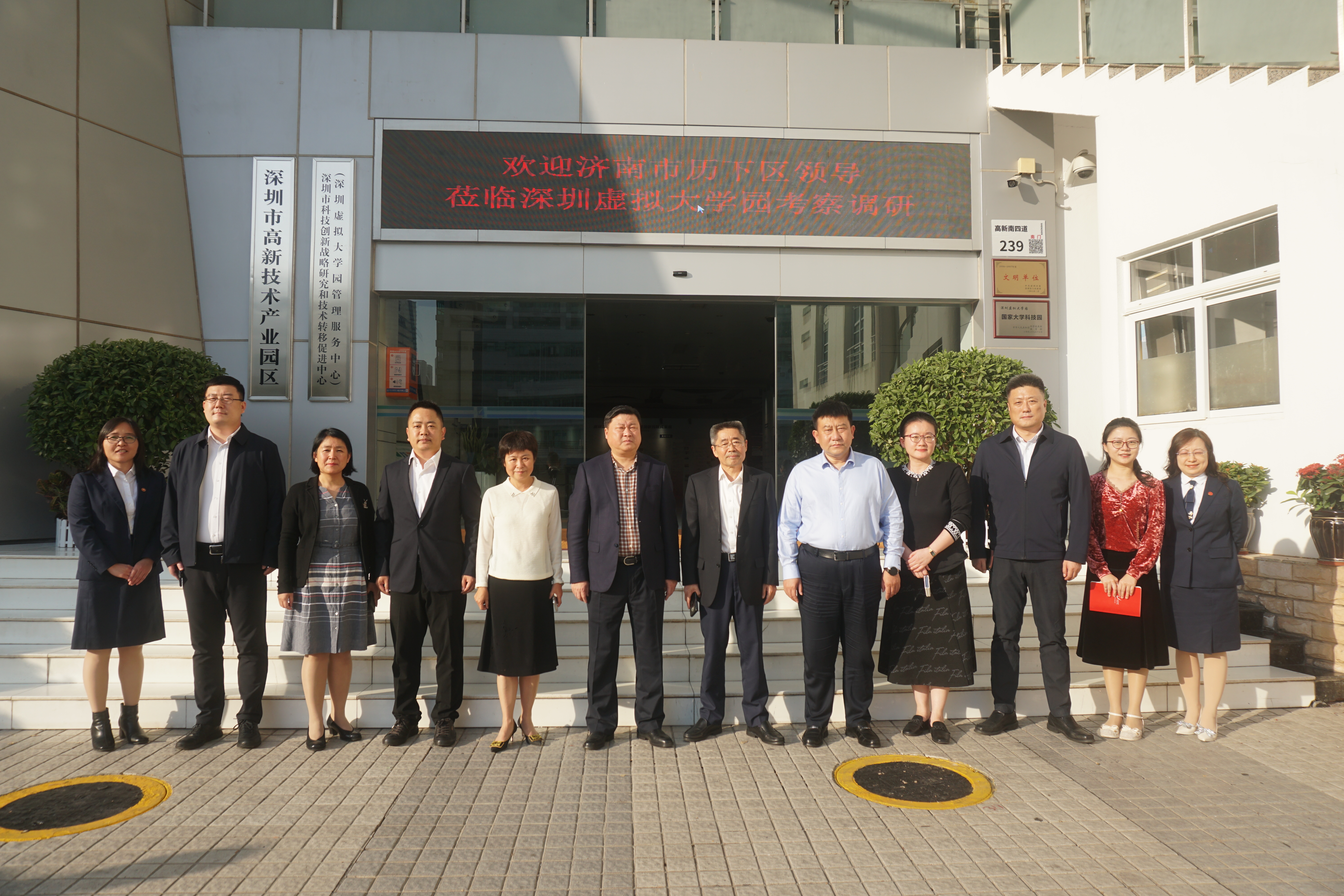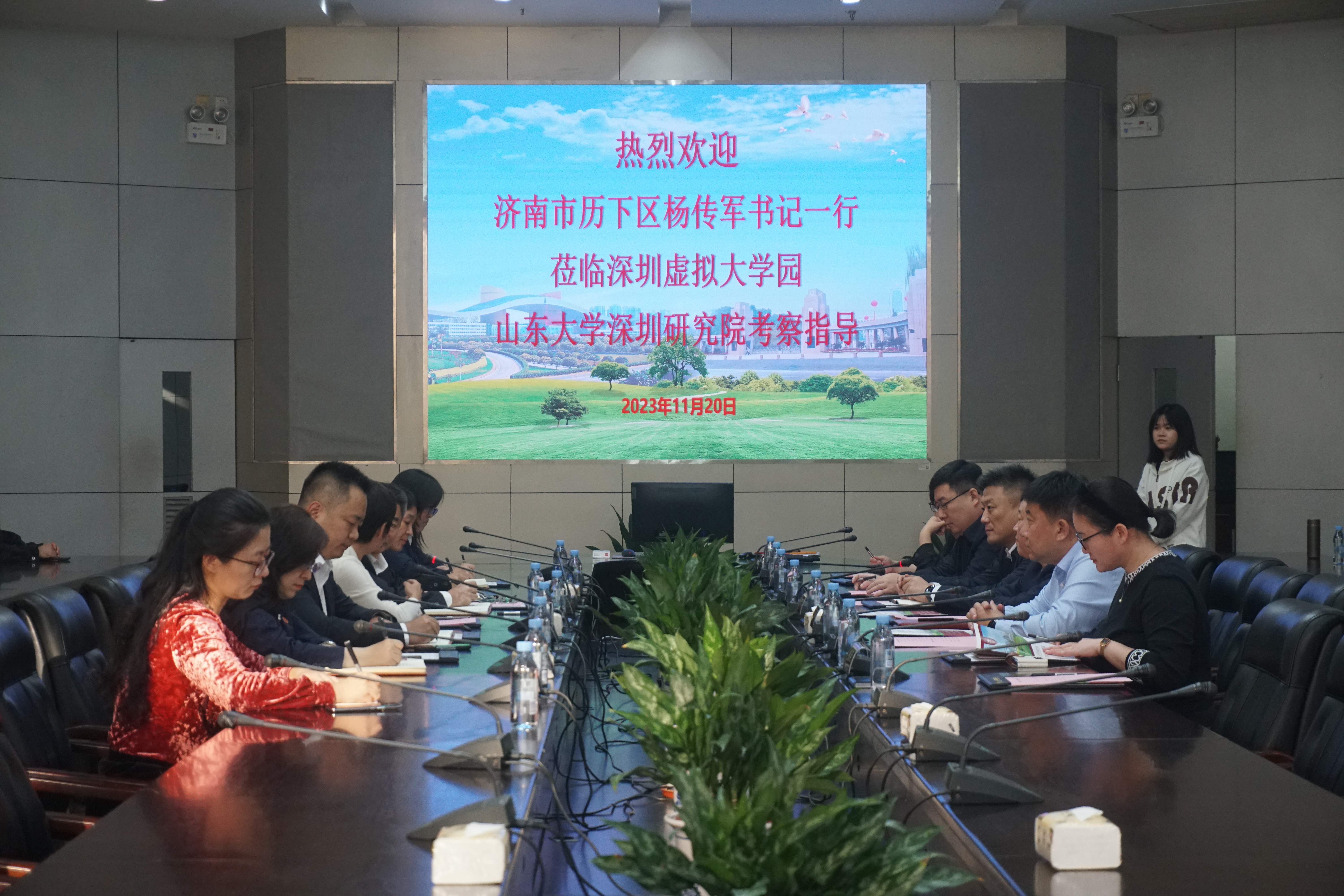 为全面贯彻党的二十大关于科技、教育、人才“三位一体”协同发展的工作方针,借助大湾区重点高校平台区位、资源优势,促进历下区与深圳市、山大深圳研究院创新融合发展,11月20日,济南市历下区区委书记杨传军一行到深圳市考察,来访深圳虚拟大学园、山东大学深圳研究院调研交流,就推动产教融合、校地合作等工作进行了深入探讨。深圳市科技创新战略研究和技术转移促进中心主任陈蓉、山东大学深圳研究院常务副院长王明星接待调研组一行并进行座谈交流。