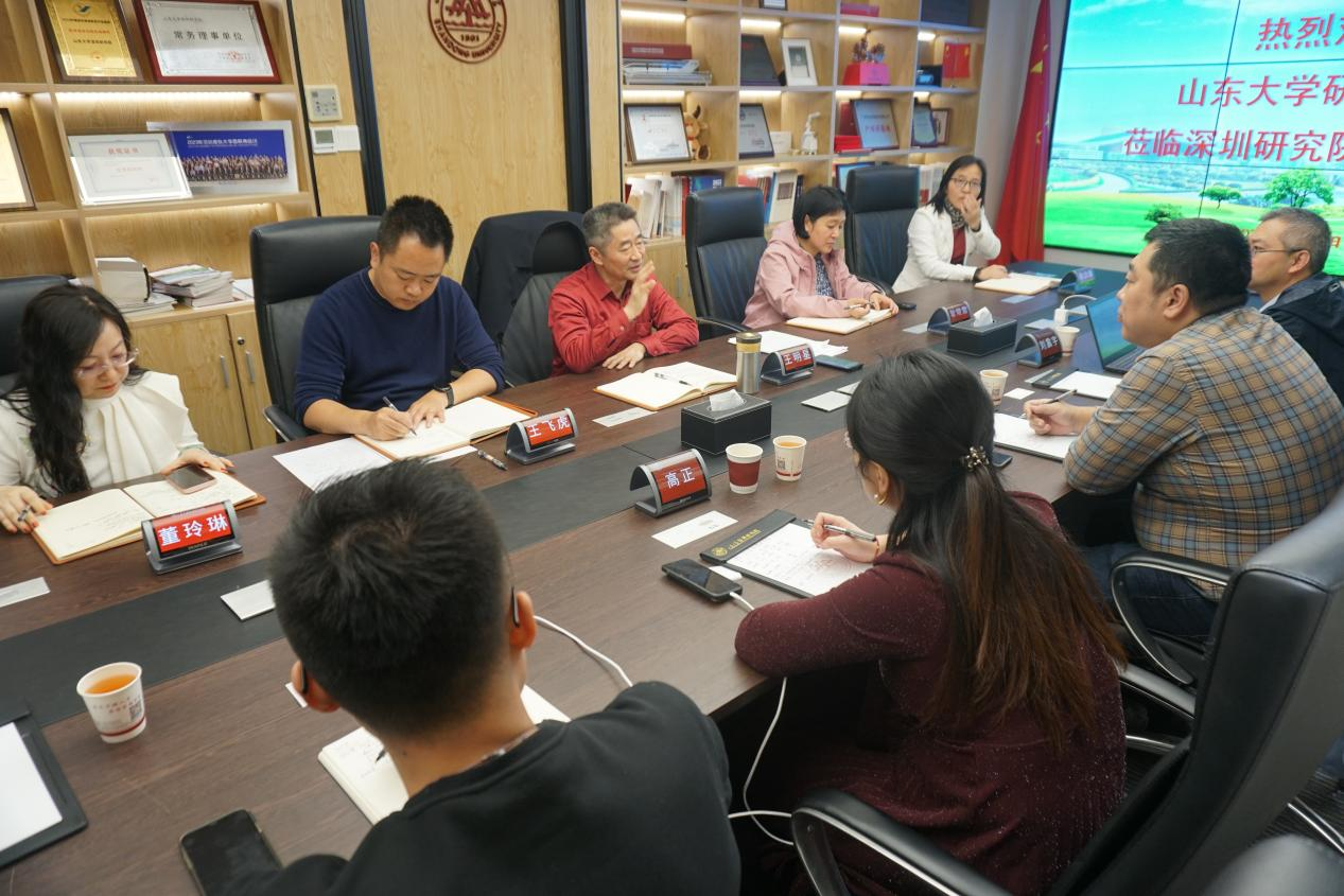 王明星对研究生院长期以来对深圳研究院的大力支持表示衷心感谢。他表示,深圳研究院立足鲁粤,聚焦粤港澳大湾区高端人才培养需求,全面图强、勇当尖兵,致力于打造高起点、高标准、高水平的在职研究生教育品牌。研究院坚持贯彻党的二十大关于教育、科技、人才三位一体,“四链融合”的布局要求,结合山东省、广东省和深圳市高质量发展需要,全力聚焦学校“立德树人”根本任务,贯彻落实学校新学期工作会议提出的九个方面重点任务和四个方面工作要求,准确把握学校“全面图强”新阶段的形势内容,找准切入点、发力点、增长点,深化产教融合、科教融合,积极优化学科专业设置,多年来形成了大湾区具有影响力的产教融合品牌。下一步研究院将与研究生院深化合作,在大湾区探索高端人才培养新机制、打造高端人才培养新模式,助力大湾区高水平人才高地建设,助力学校在两个“先行先试”中当示范、作表率,提升山东大学在粤港澳大湾区的影响力和美誉度。