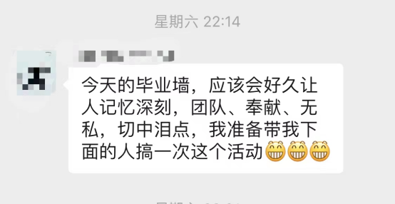 “毕业墙”环节,同学们勇担责任,主动付出,在相互帮助中凝心聚力。