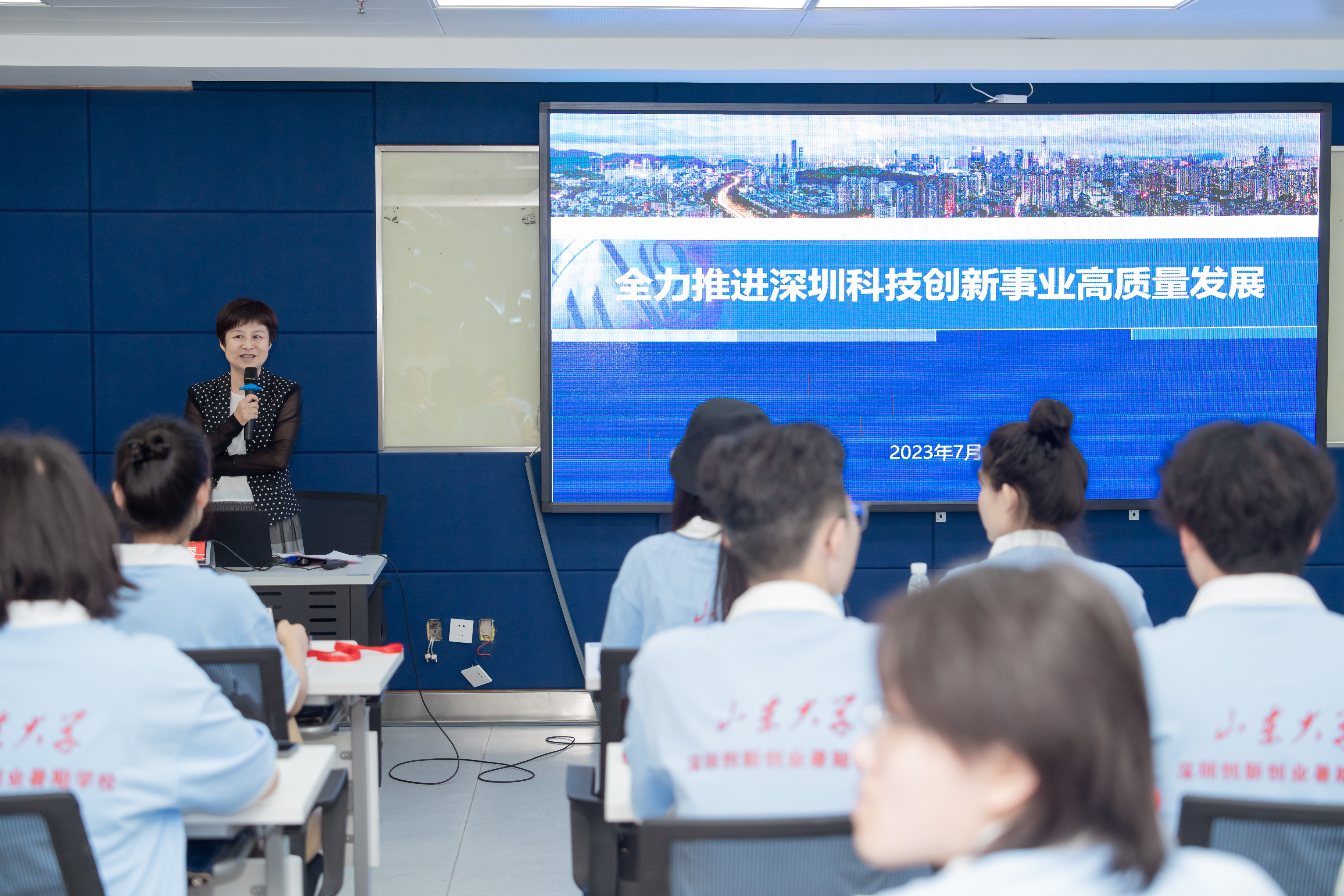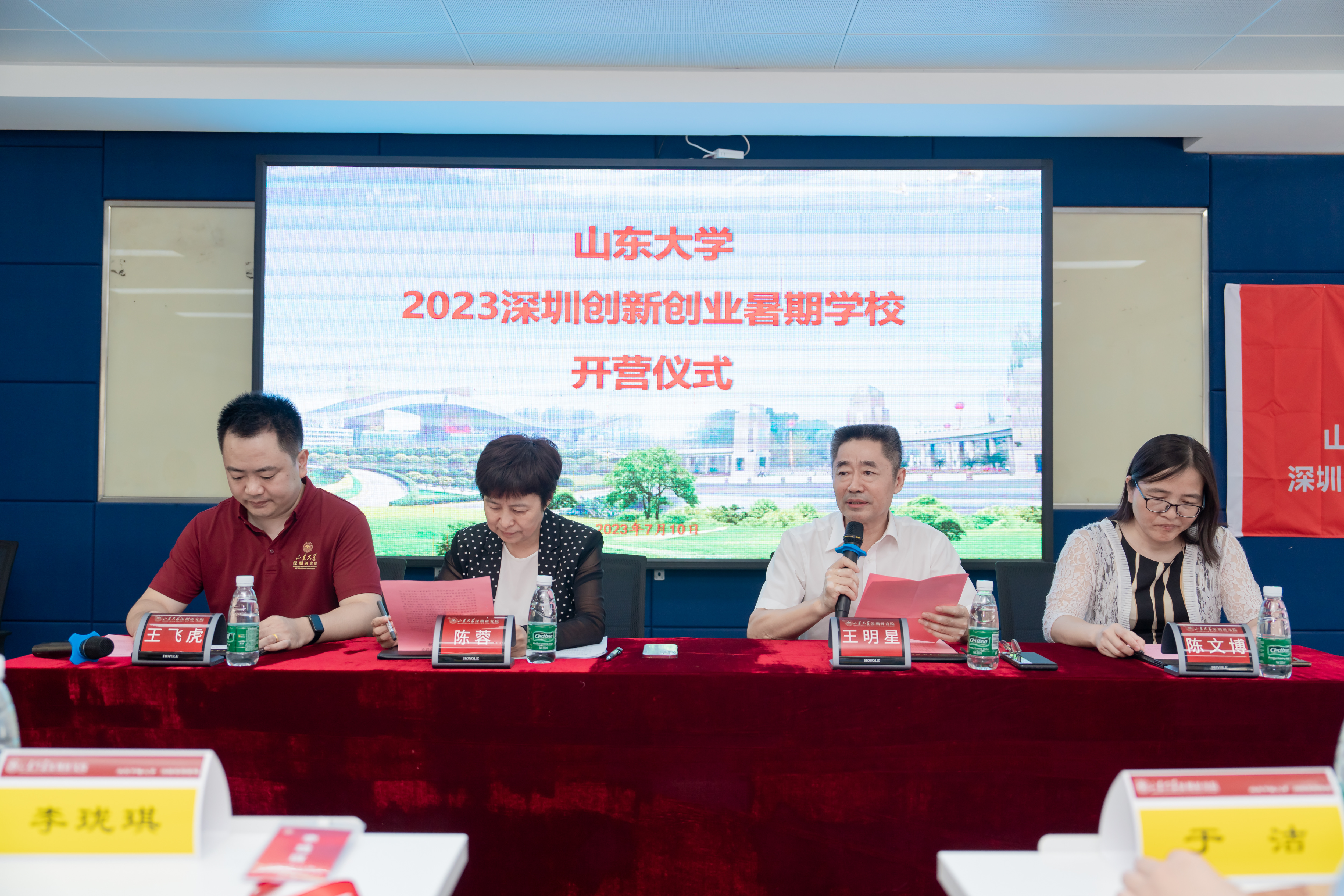 为全面贯彻党的二十大关于教育、科技、人才的工作要求和贯彻落实党中央、国务院关于高校毕业生就业工作决策部署,助力山东大学在全面提高人才自主培养质量、造就拔尖创新人才的先行先试中做表率,进一步推动我校“大众创业,万众创新”,由山东大学创新创业学院、就业指导中心、共青团山东大学委员会、本科生院、研究生院、深圳研究院、深圳市科技创新战略研究与技术转移促进中心共同举办的2023年深圳创新创业暑期学校于7月10日在深圳虚拟大学园开营。深圳市科技创新战略研究与技术转移促进中心主任陈蓉,山东大学深圳研究院常务副院长、山东大学校友会副会长王明星,山东大学深圳研究院副院长王飞虎、科技合作部部长陈文博出席开营仪式,来自山东大学一校三地23个学院的40名本硕博在校生参加此次暑期学校。