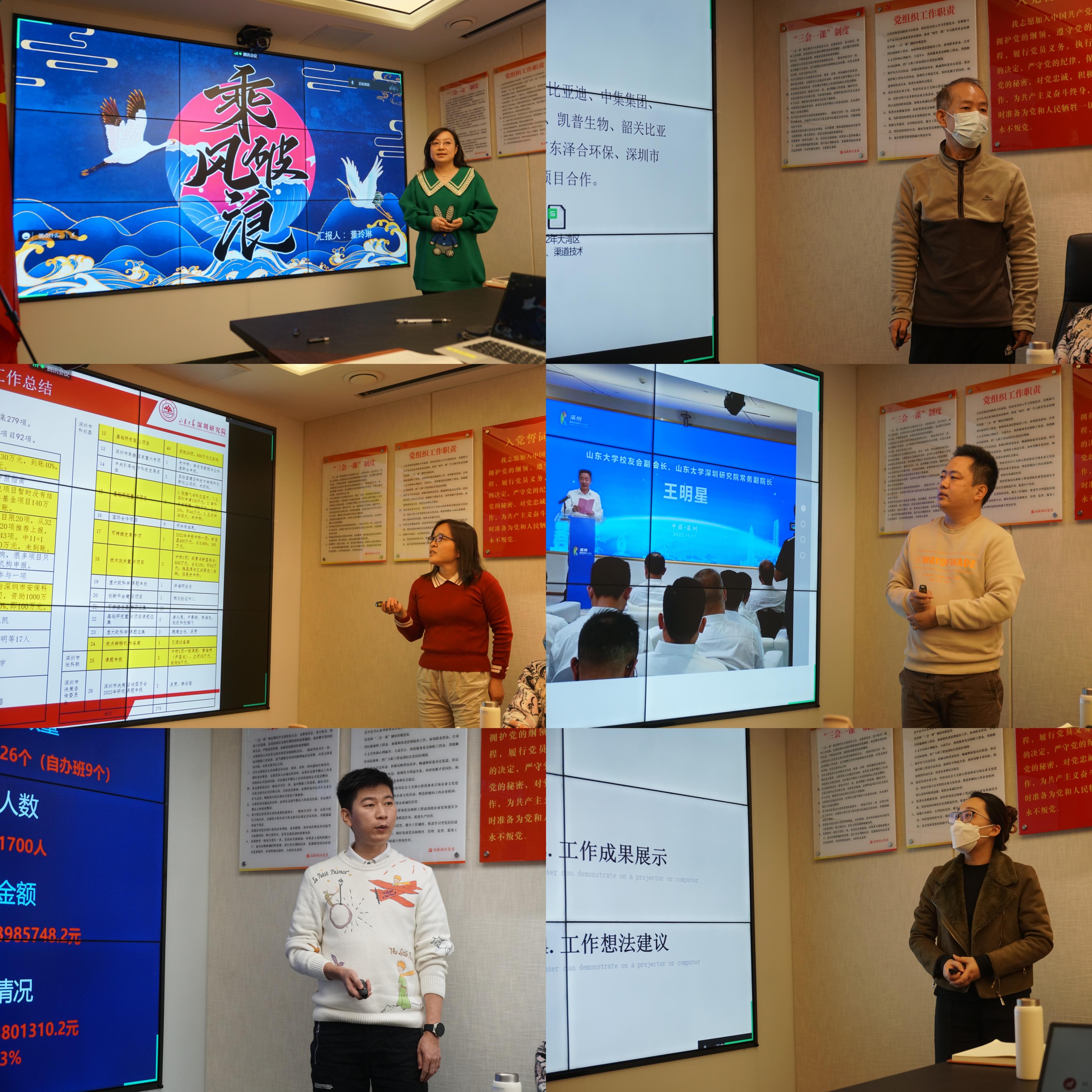 旧岁已展千重锦,新年再进百尺竿。为贯彻落实党的二十大精神,深入总结2022年度各项工作,擘画2023年发展蓝图,激励全体员工踔厉奋发、继往开来,2023年1月6日上午,山东大学深圳研究院召开2022年度年终述职考评大会,研究院常务副院长王明星、山东大学校友会理事傅杰出席会议,研究院全体员工参会,办公室主任王飞虎主持会议。