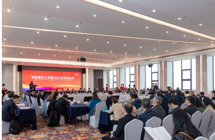 12月26日,深圳虚拟大学园2021年联席会议暨校长论坛隆重召开。本次联席会议围绕深圳科技创新“十四五”规划,聚焦院校产学研资源,深化大学与城市的融合与发展等方面展开研讨和交流。深圳市政府副秘书长李卓文,市科创委副主任、市外国专家局局长黎慧来参加活动并致辞,广东省科技厅副厅长杨军以视频方式致辞,深圳市宝安区副区长练聪,深圳市科技创新战略研究中心主任王剑华及深圳虚拟大学园成员院校校领导、首席(驻园)代表以及深圳市有关区、局领导、院校重点实验室负责人、知名企业代表及相关媒体代表等100余人出席会议。会议由深圳市科技创新委员会党组成员、副主任、深圳市外国专家局局长黎慧来主持。山东大学党委副书记张永兵代表学校出席会议,服务山东办公室主任井海明、战略企划部主任徐杰,深圳研究院常务副院长王明星陪同参加会议。