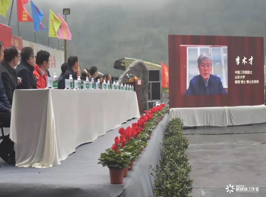 在跃龙门隧道左线贯通仪式上,李术才院士作为成兰铁路跃龙门隧道工程科研攻关单位代表以远程连线方式致贺词。