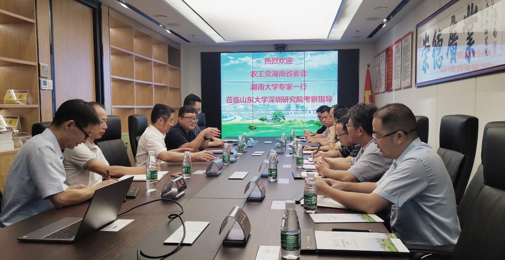 农工党湖南省委会参政议政处处长孙逢华,湖南大学化工学院教授、农工党省委青工委副主任邱仁华,生物学院副教授童春义,科研院主任科员刘冬冬,科研院主任科员龚瑜,王祎枭,农工党湖南省委会参政议政处主任科员陈杰,杨磊教授,山东大学深圳研究院办公室主任王飞虎、科技合作部部长苗东凯参加了座谈会。