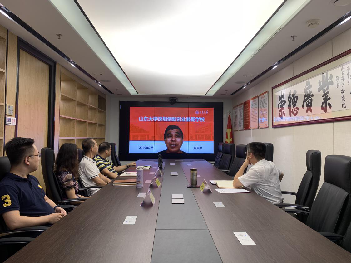 创新引领未来,实践成就梦想。2020年7月28日,山东大学2020年深圳创新创业暑期学校闭营仪式在深圳研究院顺利举行。山东大学创新创业学院院长助理陈言俊、山东大学深圳研究院常务副院长兼合作发展部副部长王明星、办公室主任王飞虎、科技合作部部长苗东凯、教育培训部部长刘丽、网络教育部部长余天豪出席闭营仪式,仪式由深圳研究院高级行政主管王宁主持。