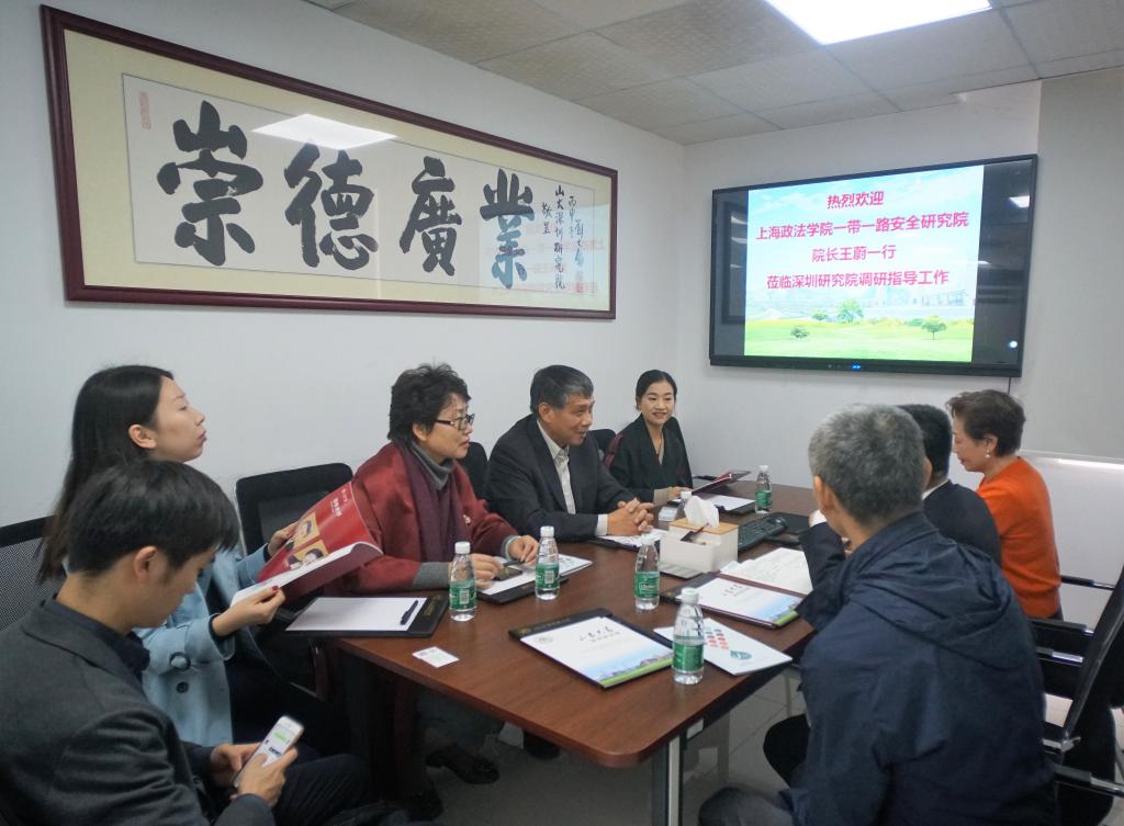 2019年12月29日,上海政法学院“一带一路”安全研究院院长王蔚一行莅临深圳研究院考察调研,山东大学深圳研究院常务副院长王明星、副院长傅杰陪同调研。