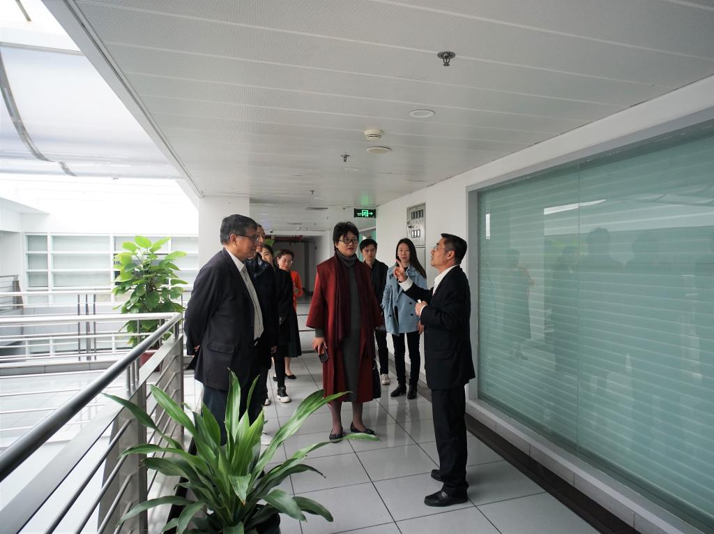 王明星陪同王蔚一行沿着研究院发展的足迹参观回顾了研究院的办公旧址、虚拟大学园的教育科研环境及研究院现在的办公环境,随后与调研组及深圳研究院工作人员进行了座谈。