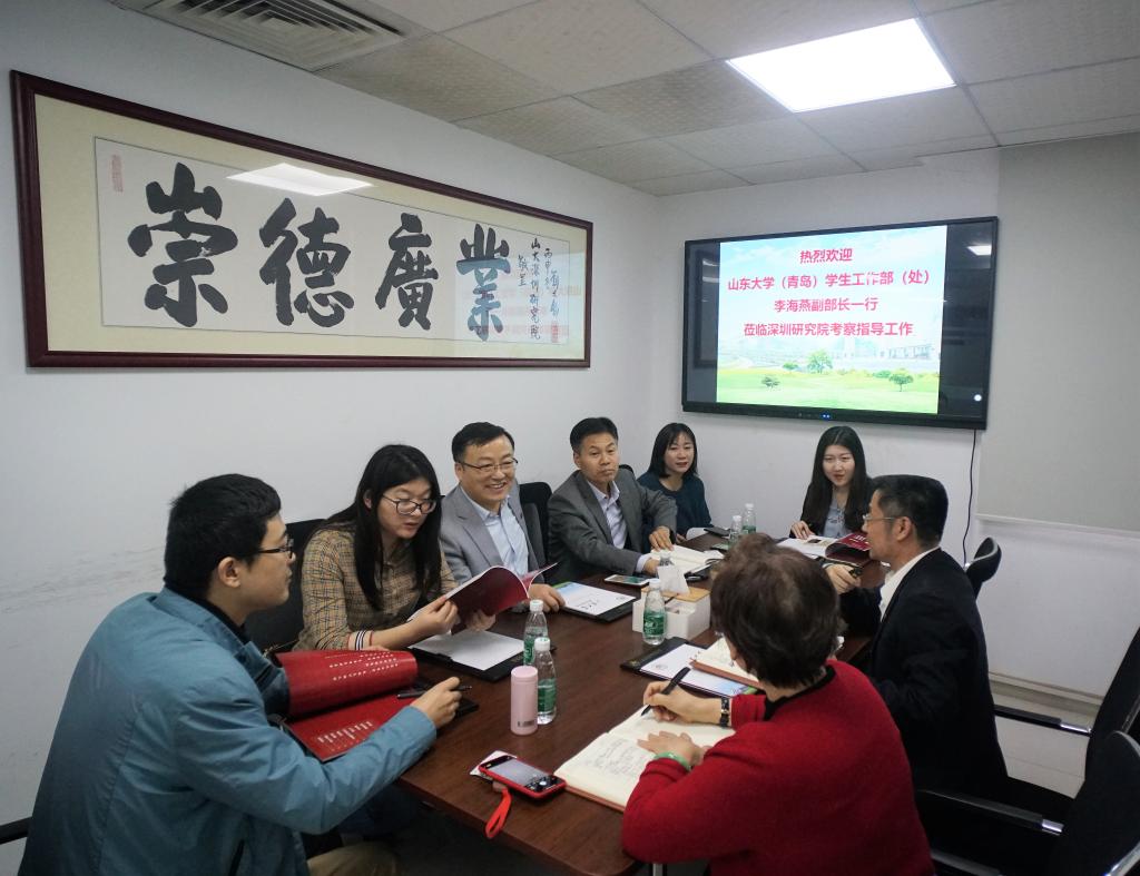 2019年12月30日下午,山东大学(青岛)学生工作部(处)副部长李海燕一行莅临深圳研究院考察调研,山东大学深圳研究院常务副院长王明星、副院长傅杰陪同调研。