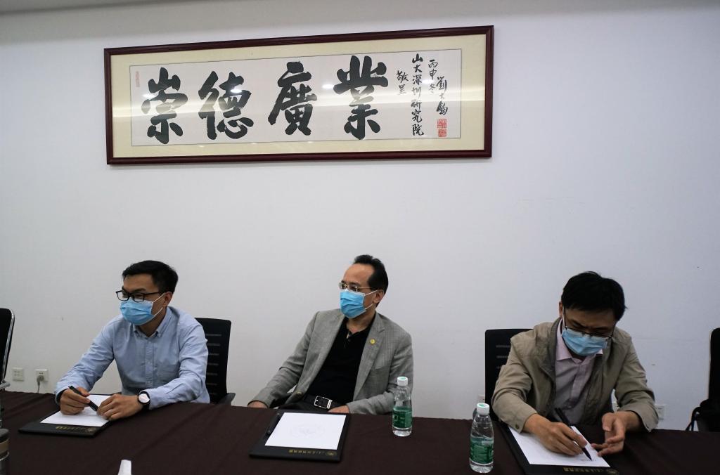 山东大学深圳研究院办公室主任王飞虎、科技合作部部长苗东凯、副部长陈文博、高级主管蒋立鹏参加了交流座谈。