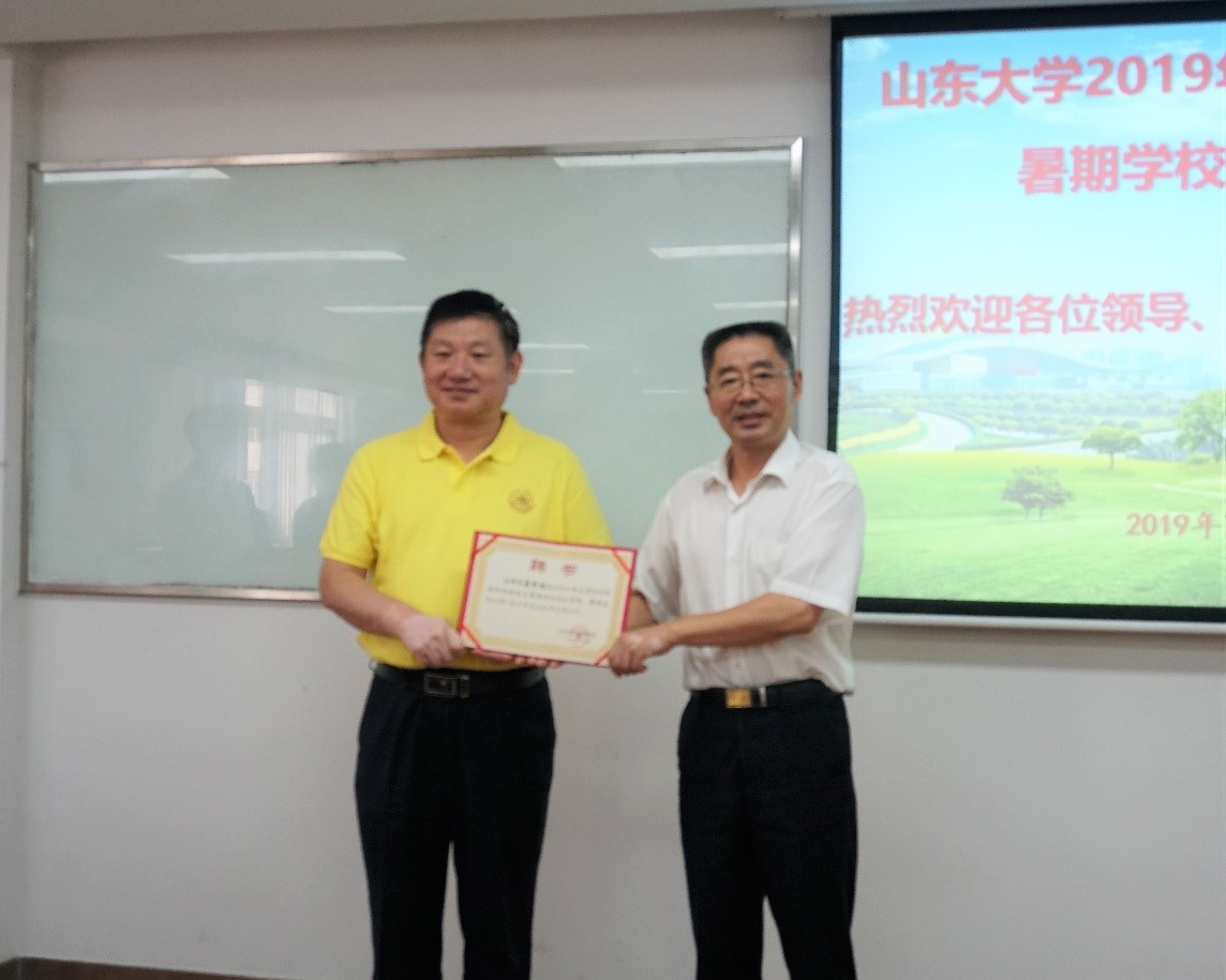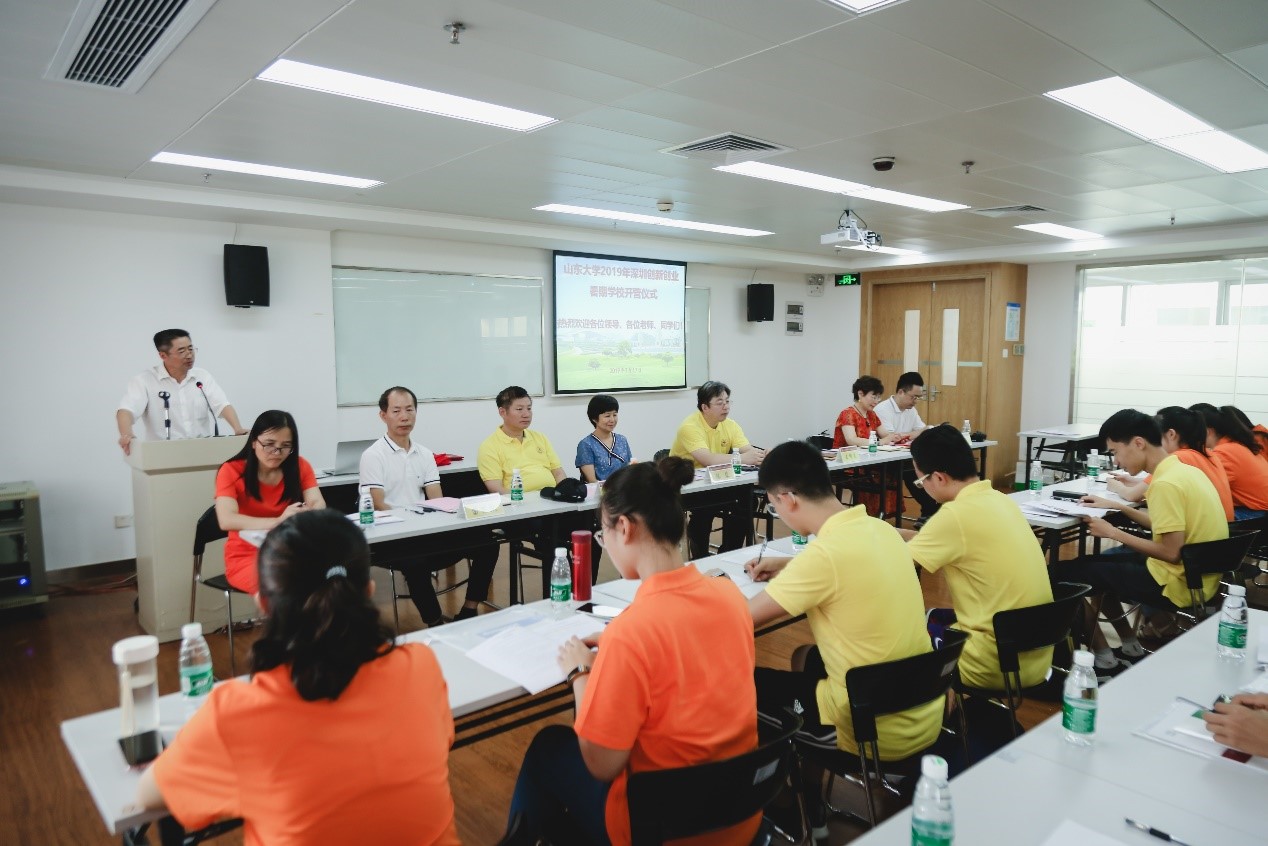 王明星在仪式上致辞,他表示山东大学创新创业暑期学校,是山东大学为落实党中央、国务院推动“大众创业 万众创新”的战略部署,帮助学生开拓视野、培养创新创业理念和意识,提升实践能力,推动教育教学综合改革,打造符合新时代需求的新型人才。深圳研究院以师资和政企为抓手,推动政企校会研团6方联动,凝练创新创业的深圳模式。逐年扩大参与学生数量,扩大覆盖面,力争到2022年年安排200名学生来深圳实习或实践。遴选创新创业教育导师,补充扩大导师队伍。发挥深圳研究院的区位优势,突出协作融合,搭建创新创业平台。鼓励学生参与创新创业活动,增加更多体验珠三角创新创业精神乃至粤港澳大湾区前沿科技发展的活动,让学生把理论指导与企业中的创新创业实践紧密联系起来,激发内在兴趣,开拓学生眼界和视野,将深圳创新创业暑期学校建设成山东大学暑期创新创业活动的品牌、特色项目,该项目已经被深圳市团市委纳入“雏凤计划”,获得了深圳市政府和学校师生的一致好评。今年的创新创业暑期学校项目已被学校纳入暑期课程中计算学分,希望同学们在两周的学习过程中将自身所学,运用到实践中去,同时增长见识,积累经验,通过暑期学校活动,同学们能做到理论与实践相结合,在创新创业这堂课上有所感悟,有所收获。同时,为做好暑期学校的工作,向大家提出几点要求:一、统一思想,提高认识,珍惜学校和研究院提供的学习机会;二、把握机会,多学多思多交流,按照要求完成各项任务;三、严格遵守相关纪律和制度,交出满意的答卷。