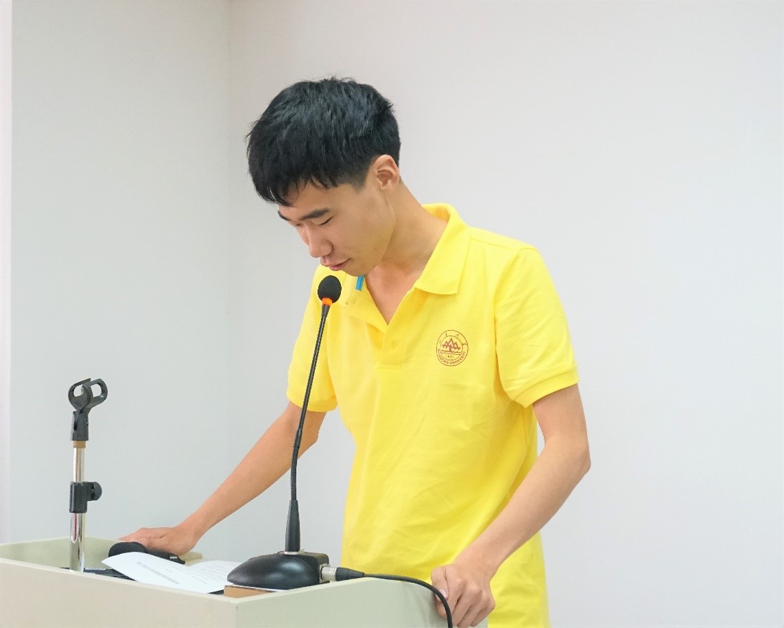 学生代表陈义凯发言,他代表学生感谢山东大学、深圳研究院、深圳团市委和虚拟大学园管理服务中心给大家提供这么好的实践机会,他表示一定会好好珍惜,努力学习,开拓视野,在创新创业暑期学校学有所成。