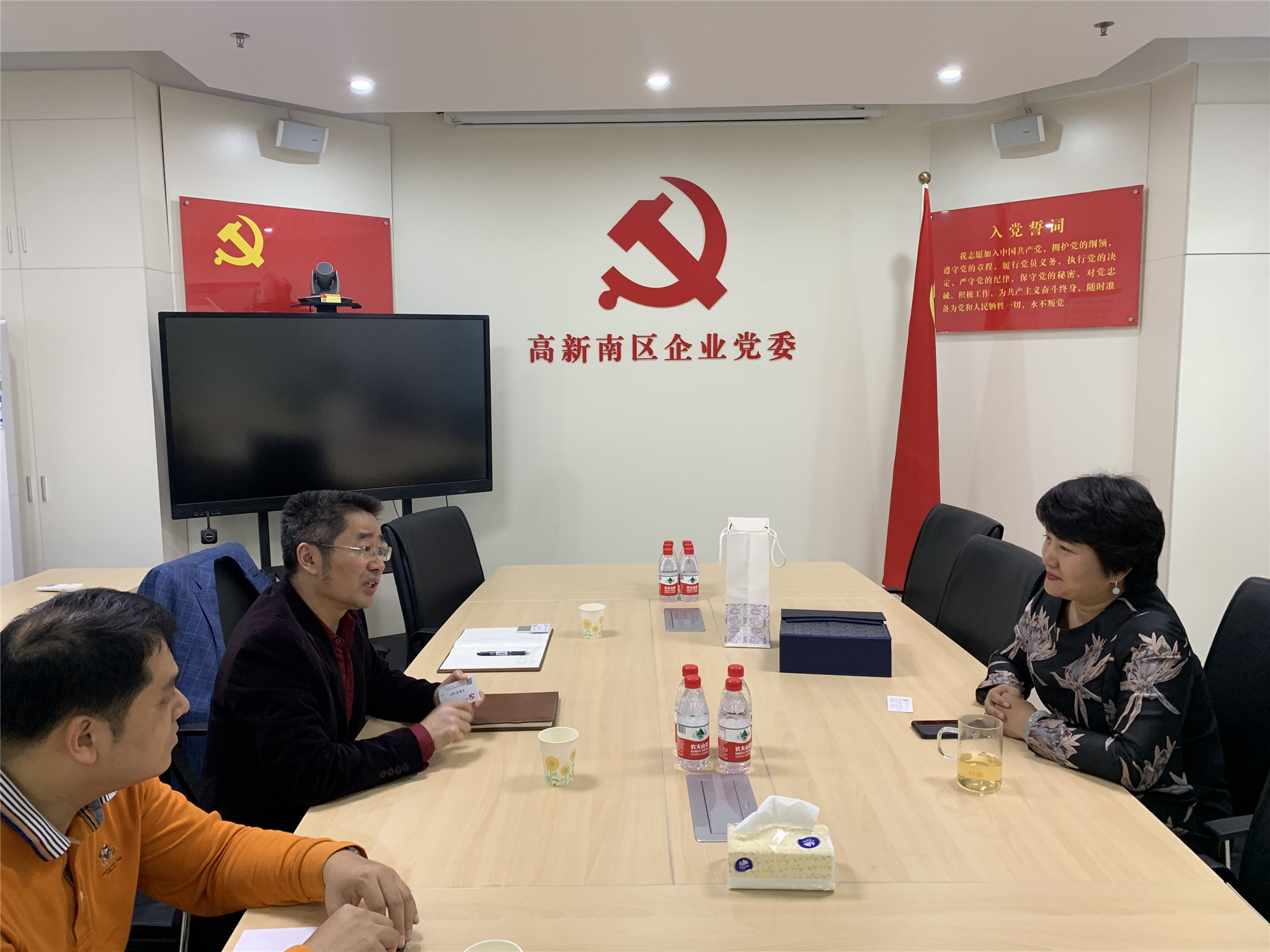 2月21日,山东大学深圳研究院常务副院长兼合作发展部副部长王明星携党建工作调研组到深圳市高新南区企业党委参观学习,汲取党建工作先进经验。高新南区党委专职副书记马丽芳陪同接待,深圳研究院办公室主任王飞虎、教育培训部副部长余天豪陪同参加调研。