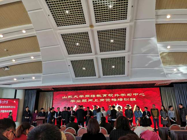 11月1日,山东大学网络教育校外学习中心学业顾问上岗资格培训班业务知识考核及结业典礼在威海金沙滩学府酒店举行。